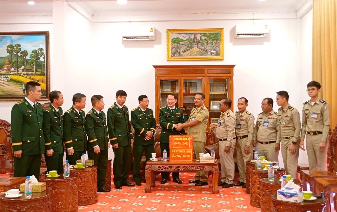Đoàn công tác BĐBP Long An tặng quà, chúc Tết lực lượng Hiến binh tỉnh Pray Veng. Ảnh: Minh Luận