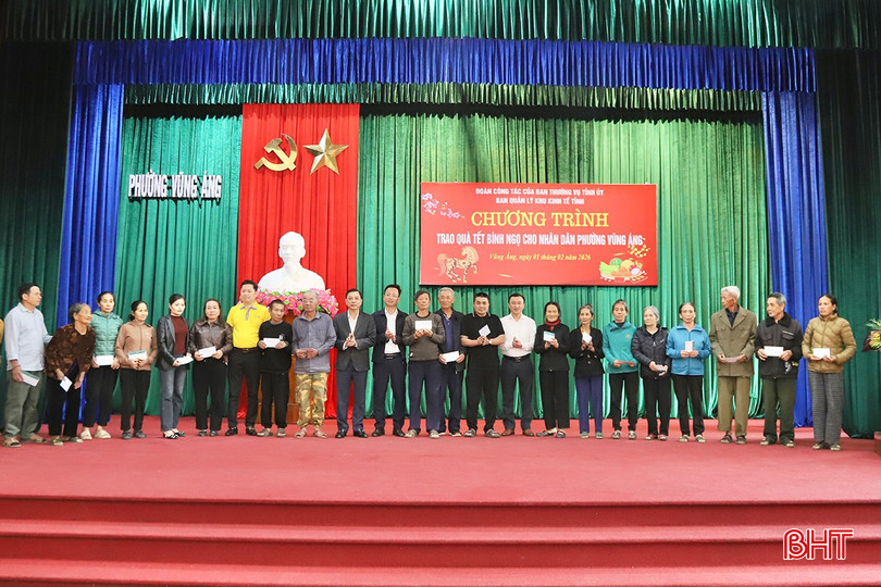 Dịp này, Ban Quản lý Khu kinh tế tỉnh đã huy động nguồn lực từ các doanh nghiệp, đơn vị trên địa bàn, trao tặng 250 suất quà Tết, mỗi suất trị giá 500 ngàn đồng cho các hộ nghèo, cận nghèo, đối tượng yếu thế tại phường Sông Trí và phường Vũng Áng .