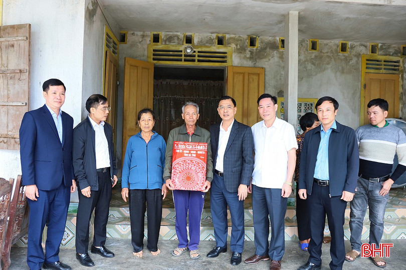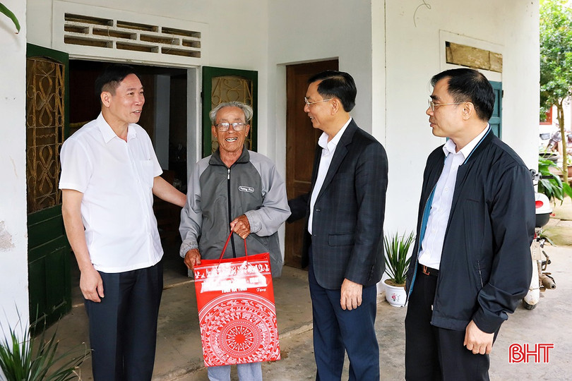 Trưởng BQL Khu kinh tế tỉnh Trần Việt Hà và đoàn đã đến tặng quà cho thương binh Nguyễn Đình Ngân (SN 1945, TDP Hoàng Trinh, phường Sông Trí).