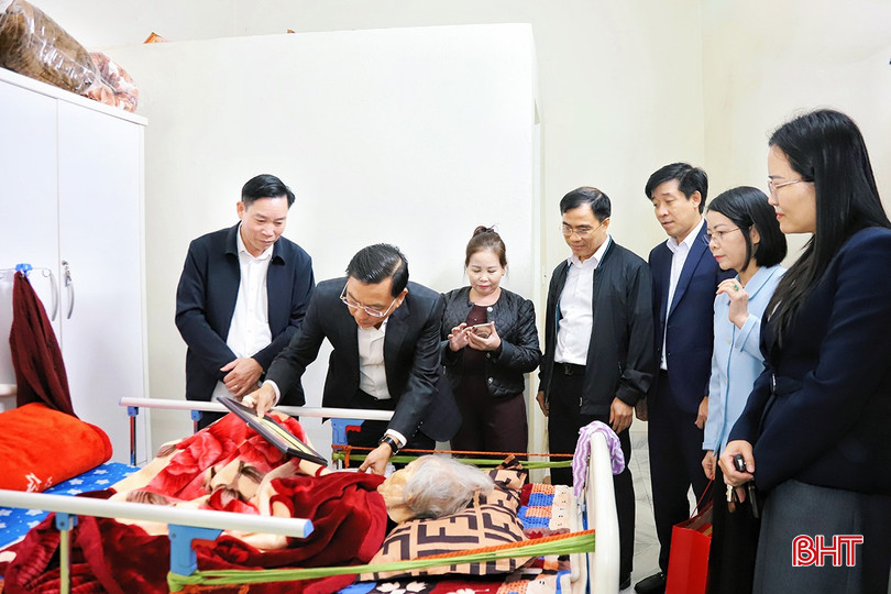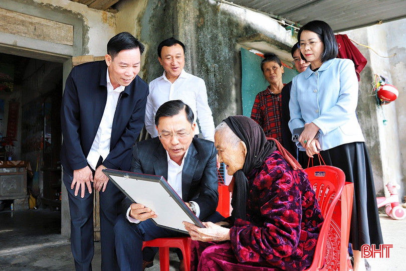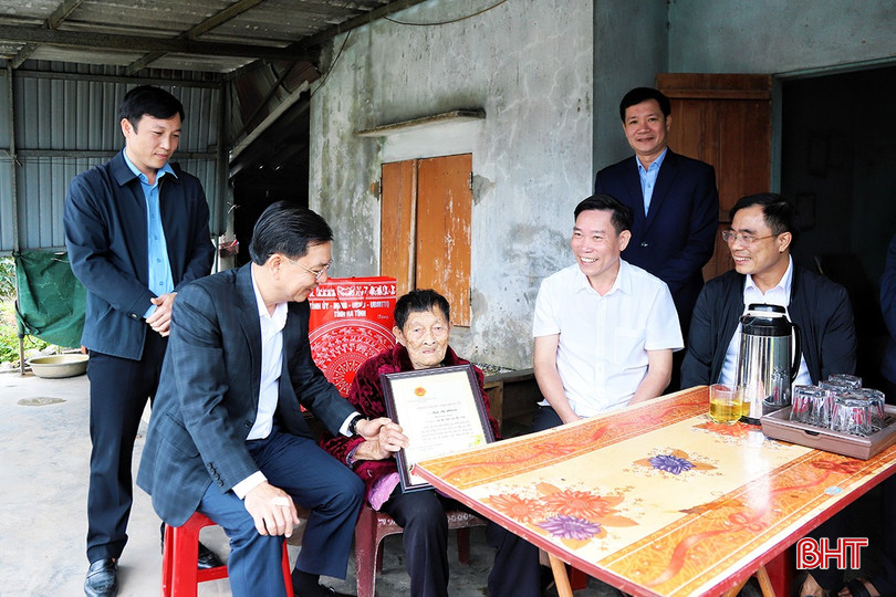 Trước thềm xuân Bính Ngọ 2026, Trưởng BQL Khu kinh tế tỉnh Trần Việt Hà cũng đến tặng quà và chúc thọ các cụ Trịnh Thị Mai (TDP 1, phường Sông Trí); cụ Hoàng Thị Nuôi (TDP Bắc Phong, phường Vũng Áng); cụ Nguyễn Thị Nhuấn (thôn Tân Thành, xã Kỳ Anh) tròn 100 tuổi và cụ Lưu Văn Nhiệm (thôn Tuần Thượng, xã Kỳ Xuân) tròn 90 tuổi.