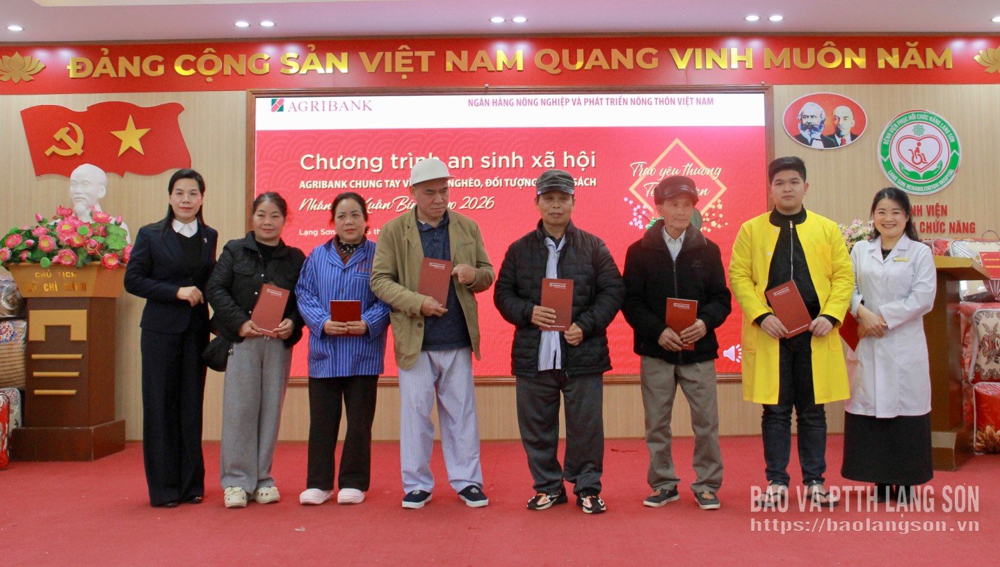 Lãnh đạo Bệnh viện phục hồi chức năng tỉnh và Ngân hàng Agribank Lạng Sơn trao trao quà tết cho bệnh nhân