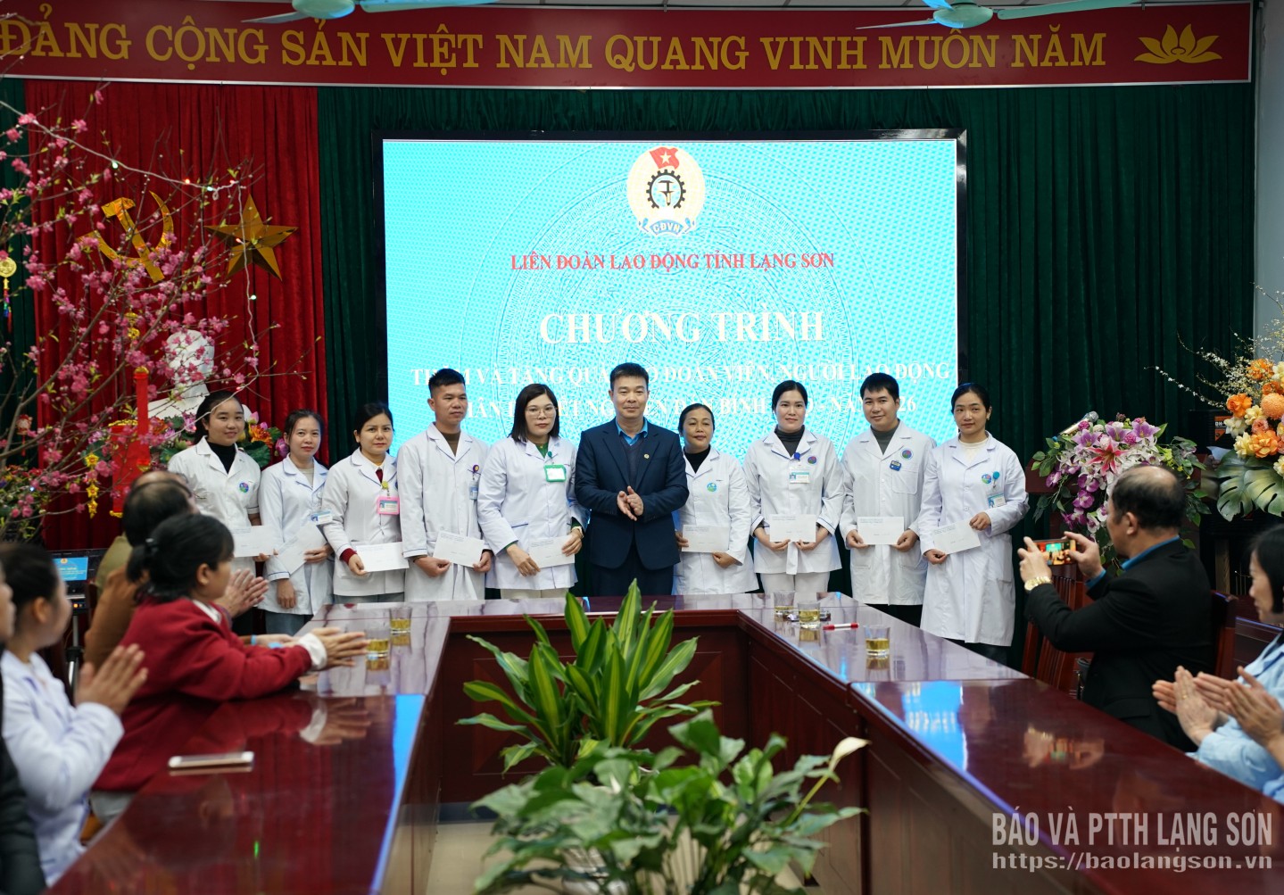 Lãnh đạo Liên đoàn Lao động tỉnh tặng quà đoàn viên, người lao động Trung tâm Y Tế khu vực Lộc Bình (xã Lộc Bình)