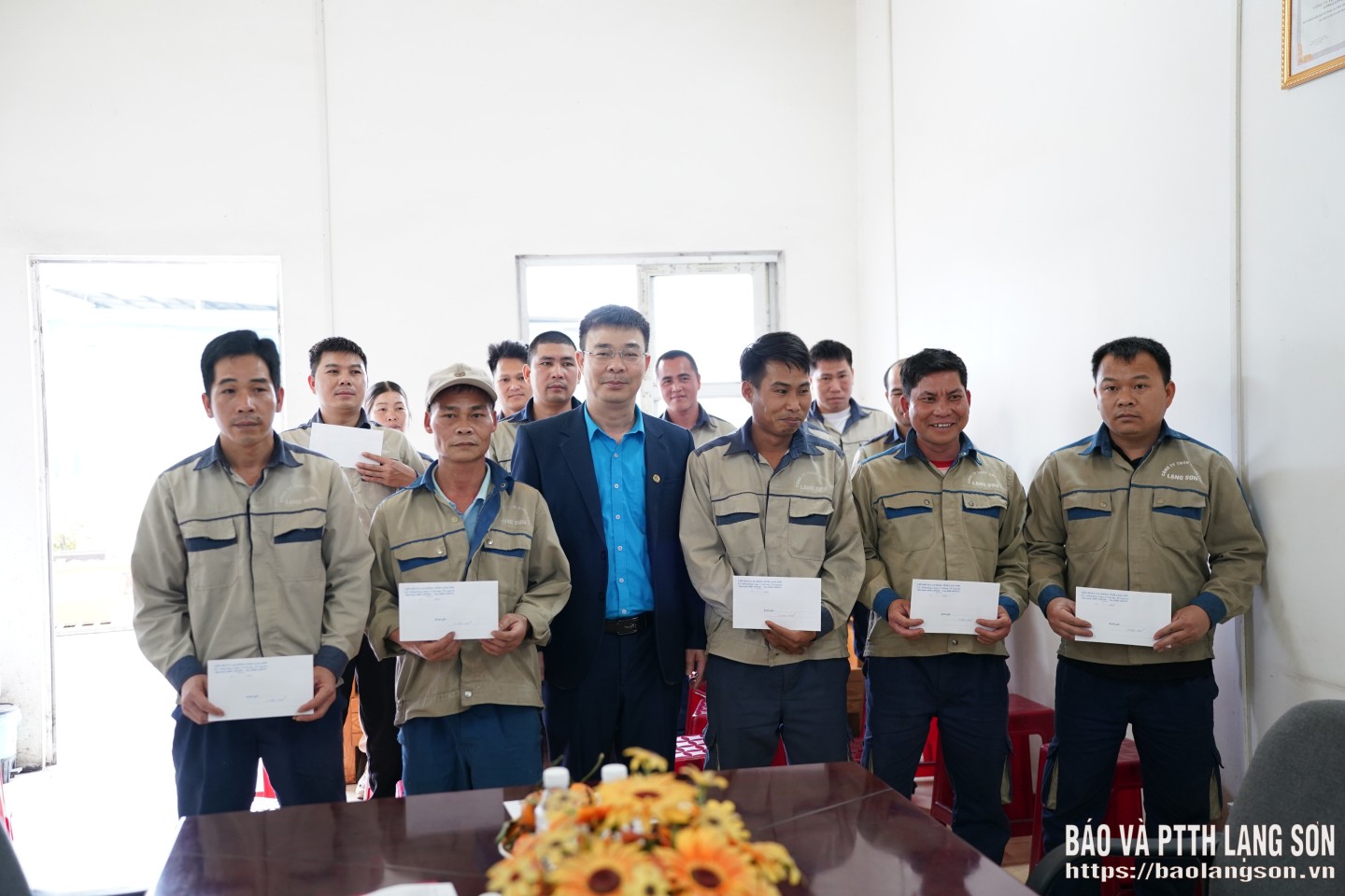 Lãnh đạo Liên đoàn Lao động tỉnh tặng quà đoàn viên, người lao động Công ty TNHH SONGLEES Lạng Sơn (xã Na Dương)