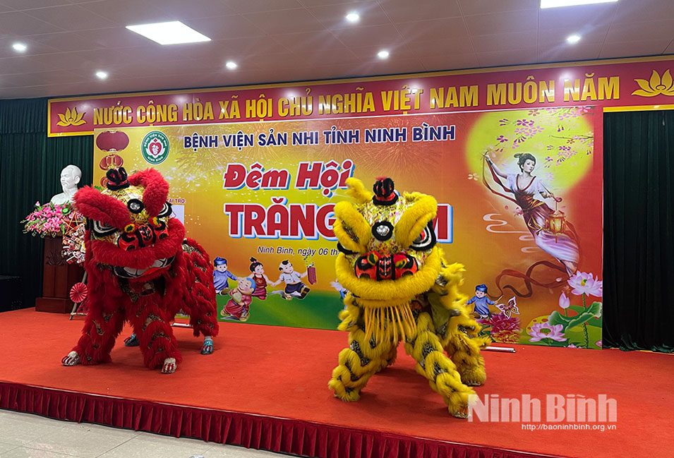 Biểu diễn lân sư rồng tại “Đêm hội trăng rằm” ở Bệnh viện Sản Nhi tỉnh.
