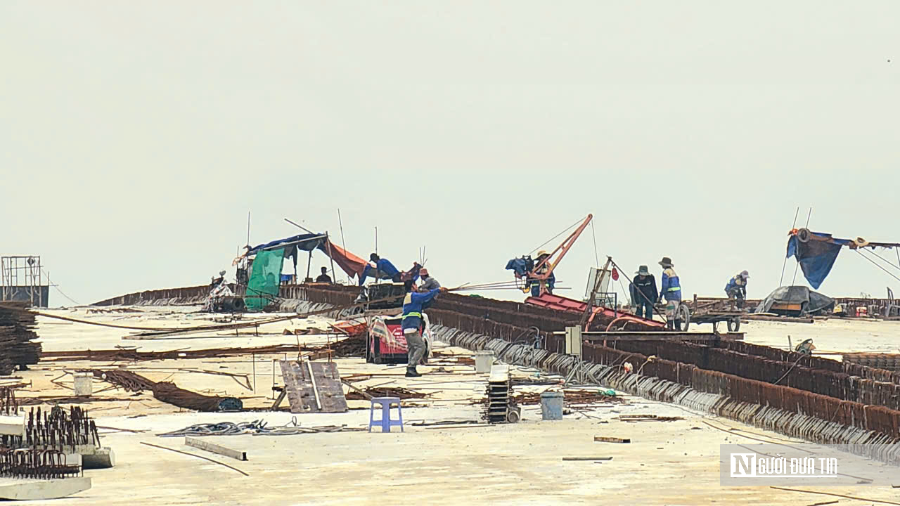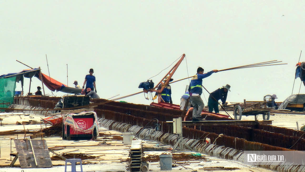 Công nhân tích cực thi công để bảo đảm tiến độ dự án.