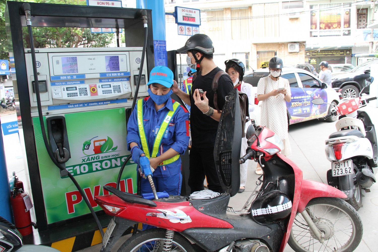 Người dân đổ xăng E10 tại cây xăng Thái Thịnh (Ảnh: Mạnh Tưởng)
