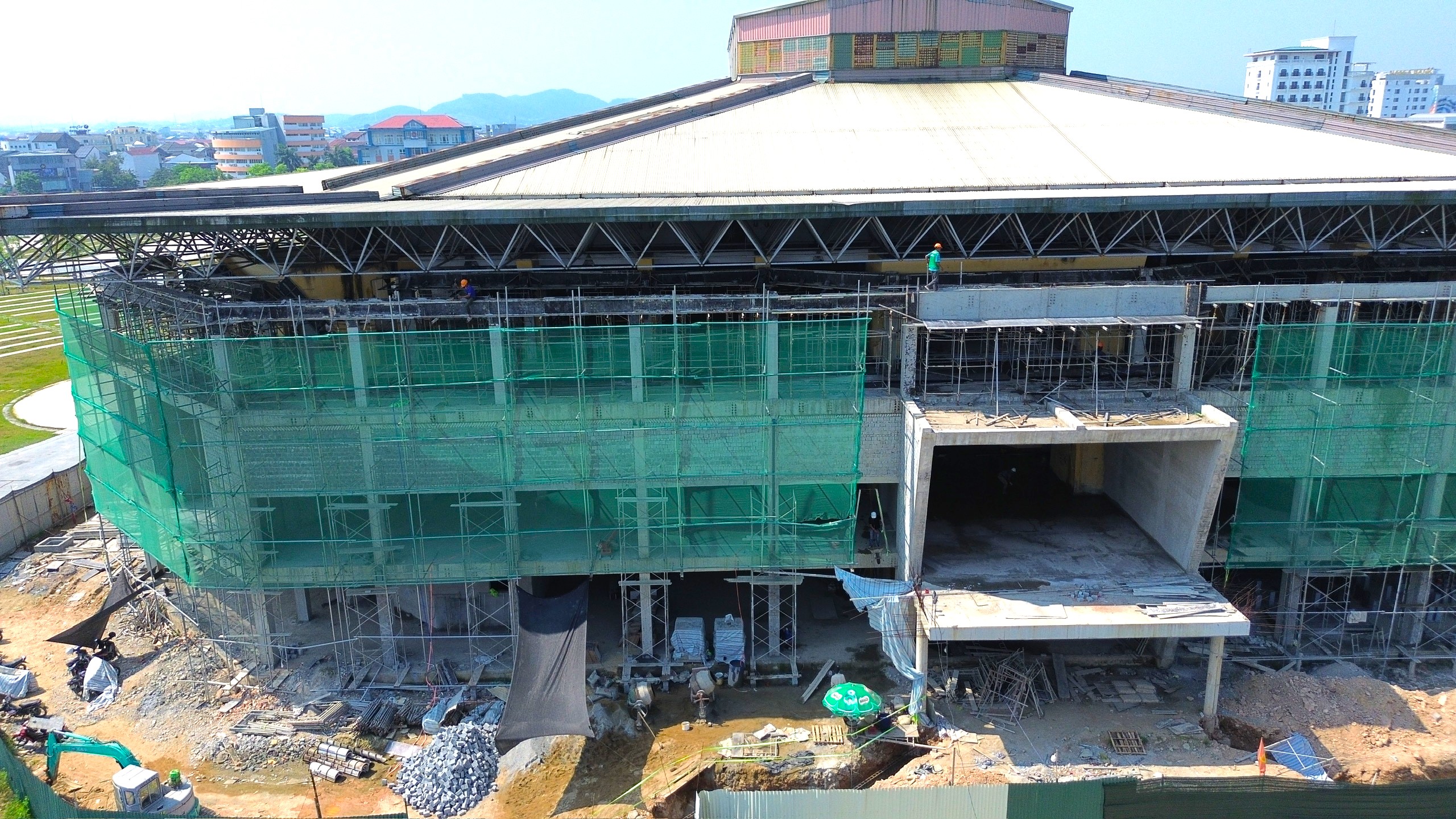 Đối với hạng mục cải tạo nhà thi đấu bên trong, các đơn vị thi công đang tập trung nguồn lực để hoàn thiện và phấn đấu hoàn thành vào 30/4 tới.