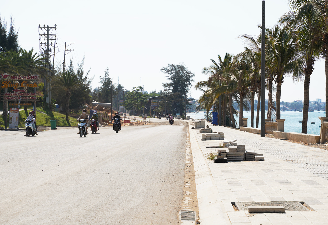 Đáng chú ý, một số đoạn đã được thảm nhựa hoàn chỉnh như khu vực trước khu du lịch Centara và đoạn từ bến xe Phương Trang đến resort Mũi Né, giúp cải thiện đáng kể điều kiện lưu thông, giảm bụi và hạn chế ùn tắc cục bộ.