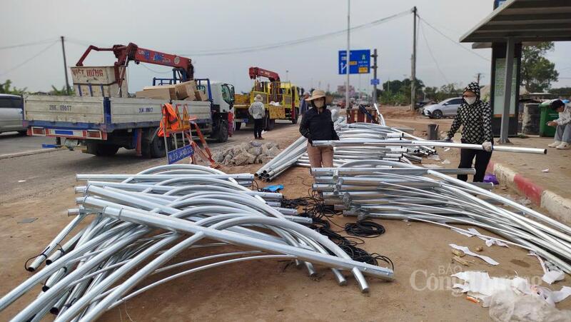 Huy động phương tiện, máy móc sớm hoàn thiện tiến độ lắp đặt hệ thống đèn chiếu sáng trước Tết.