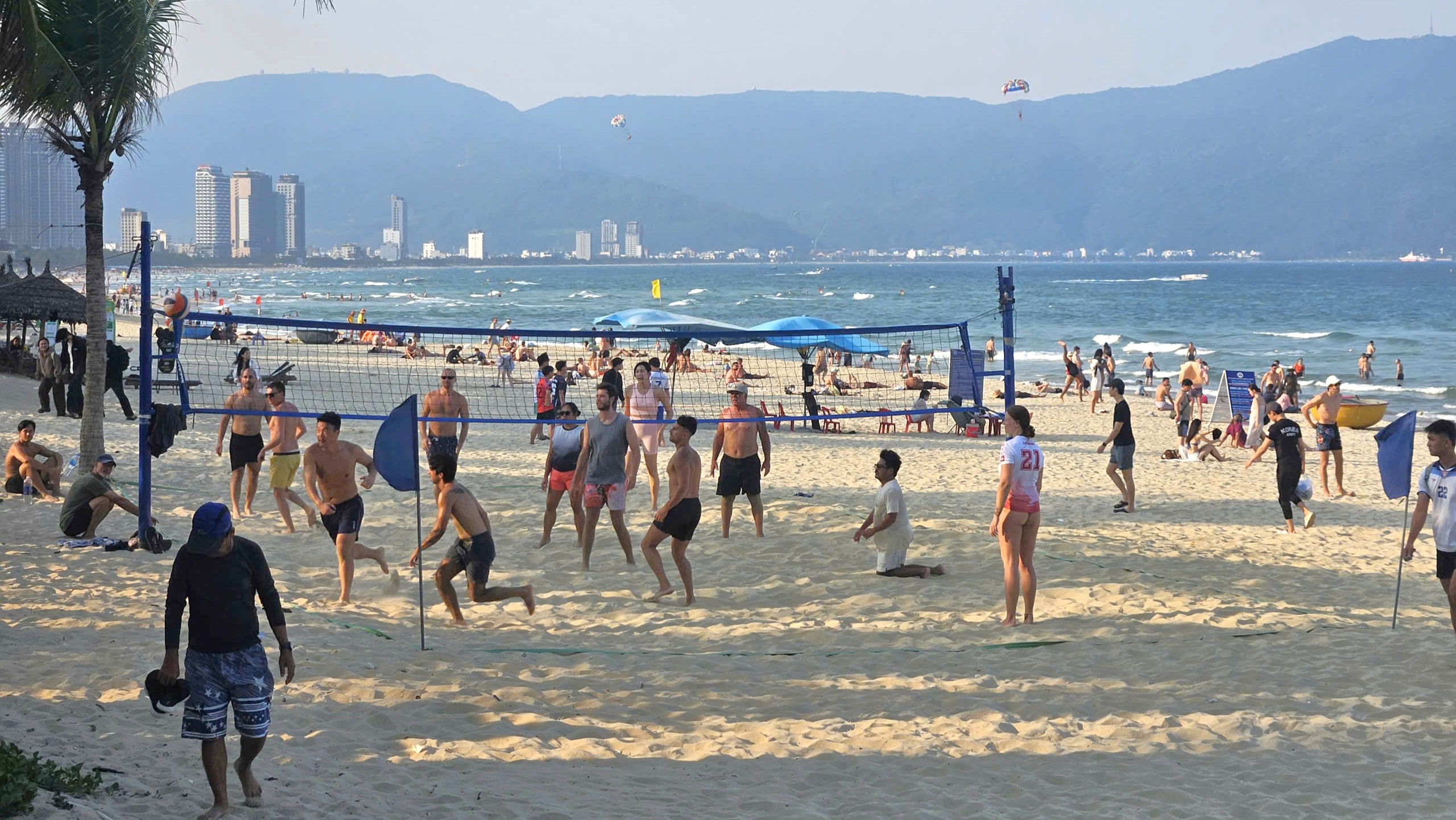 Du khách quốc tế tập trung rất đông trên biển Mỹ Khê ở Đà Nẵng. Ảnh: TẤN VIỆT