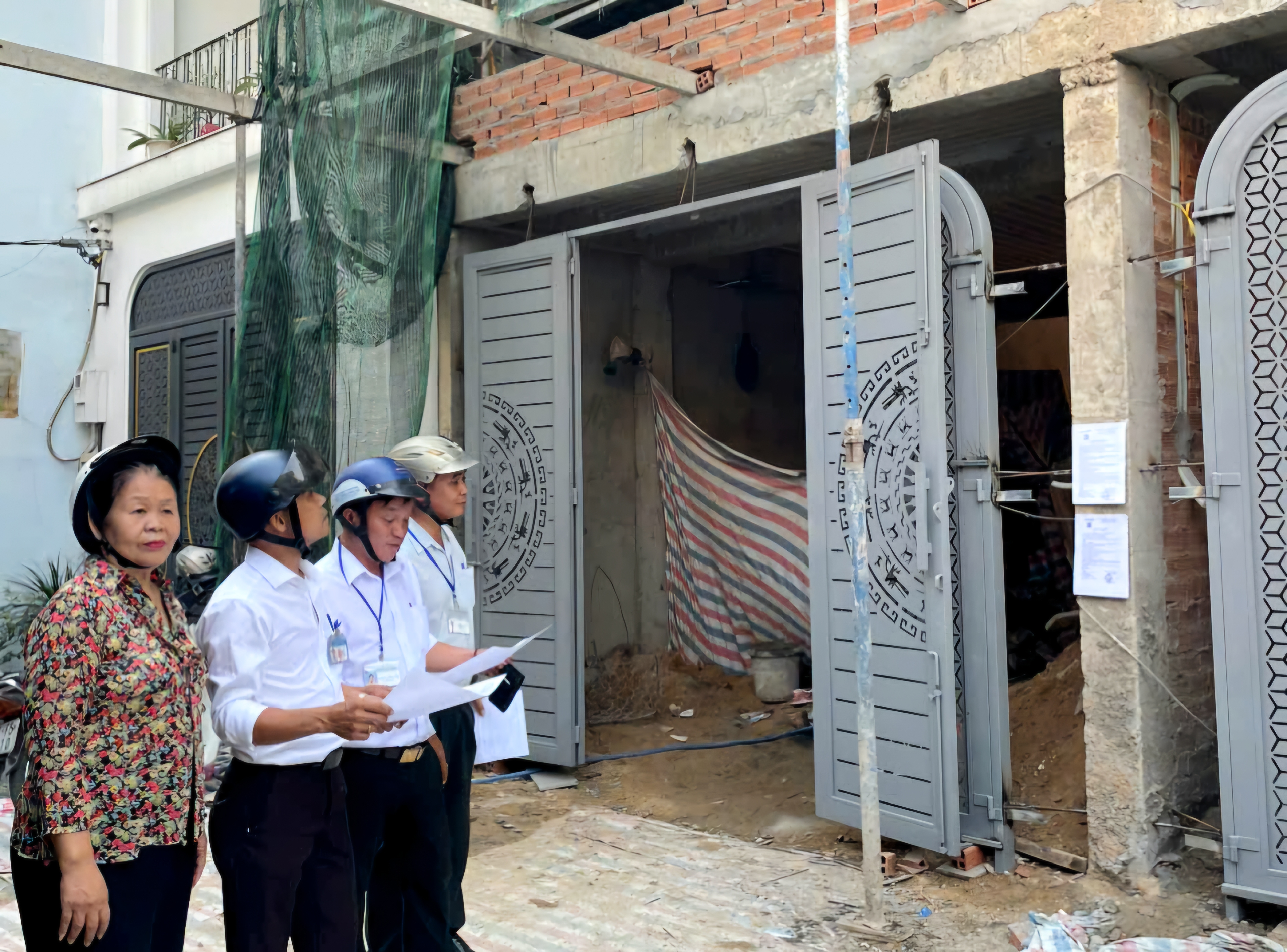 Lực lượng chức năng phường An Phú Đông kiểm tra công trình xây dựng trên địa bàn. Ảnh: ĐÔNG SƠN