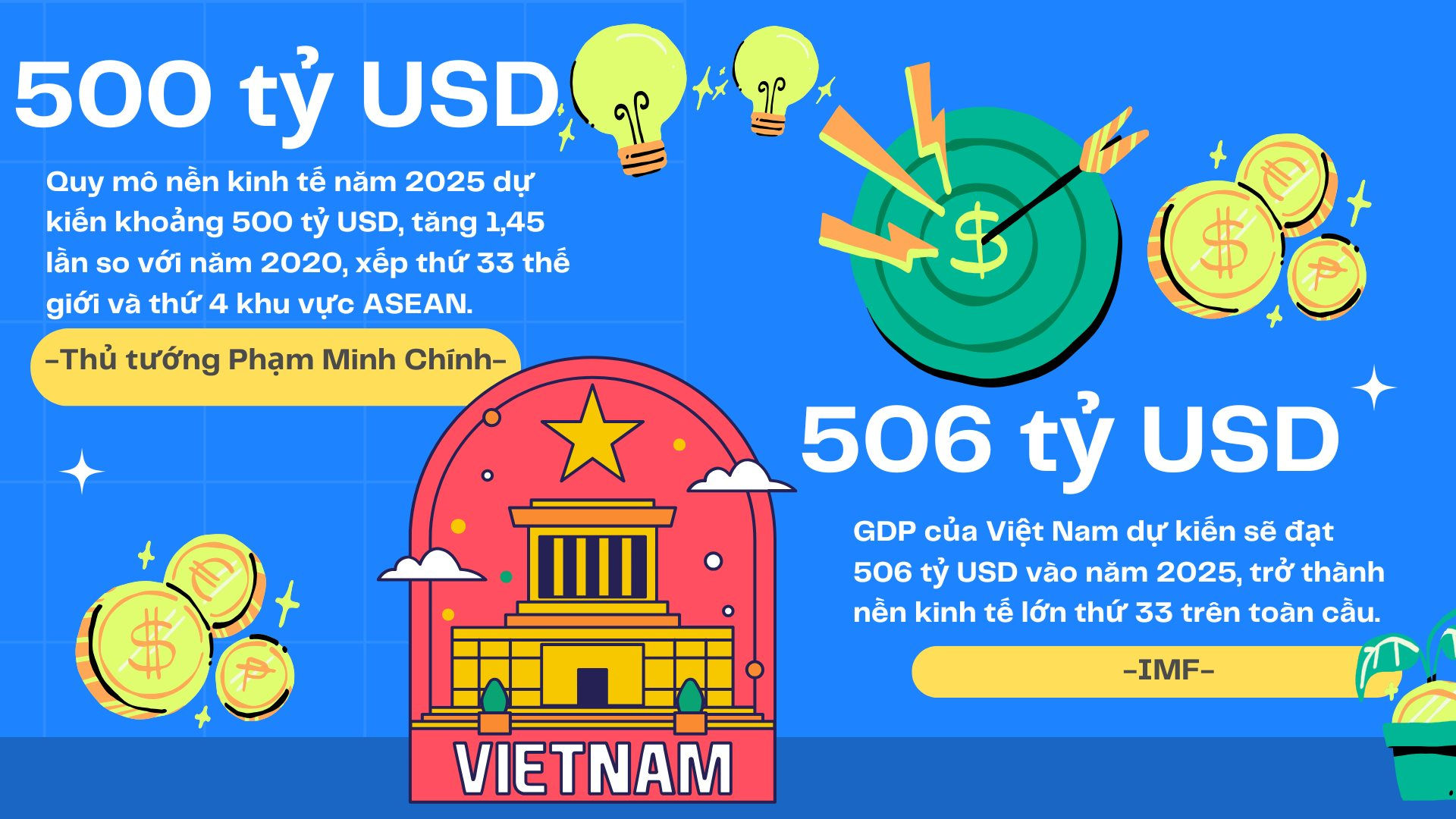 Quy mô GDP từ 346,6 tỷ USD năm 2020, xếp thứ 37 trên thế giới, dự kiến tăng lên trên 510 tỷ USD năm 2025, gấp 1,47 lần so với năm 2020, xếp thứ 32 thế giới và thứ 4 trong khu vực ASEAN. GDP bình quân đầu người năm 2025 ước đạt khoảng 5.000 USD, gấp 1,4 lần năm 2020, vào nhóm thu nhập trung bình cao.
