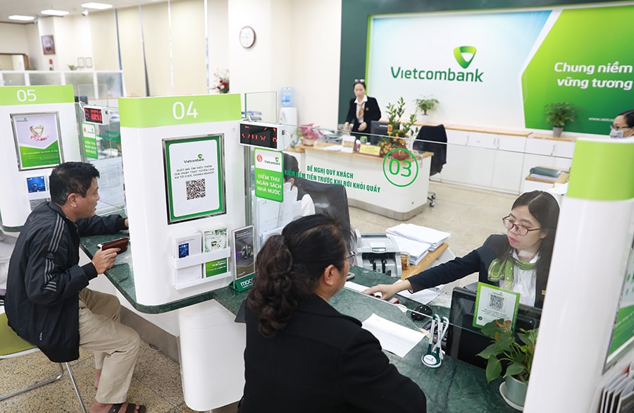 Tư vấn lãi suất cho khách hàng tại Ngân hàng thương mại cổ phần Ngoại thương Việt Nam. Ảnh: Nguyễn Quang