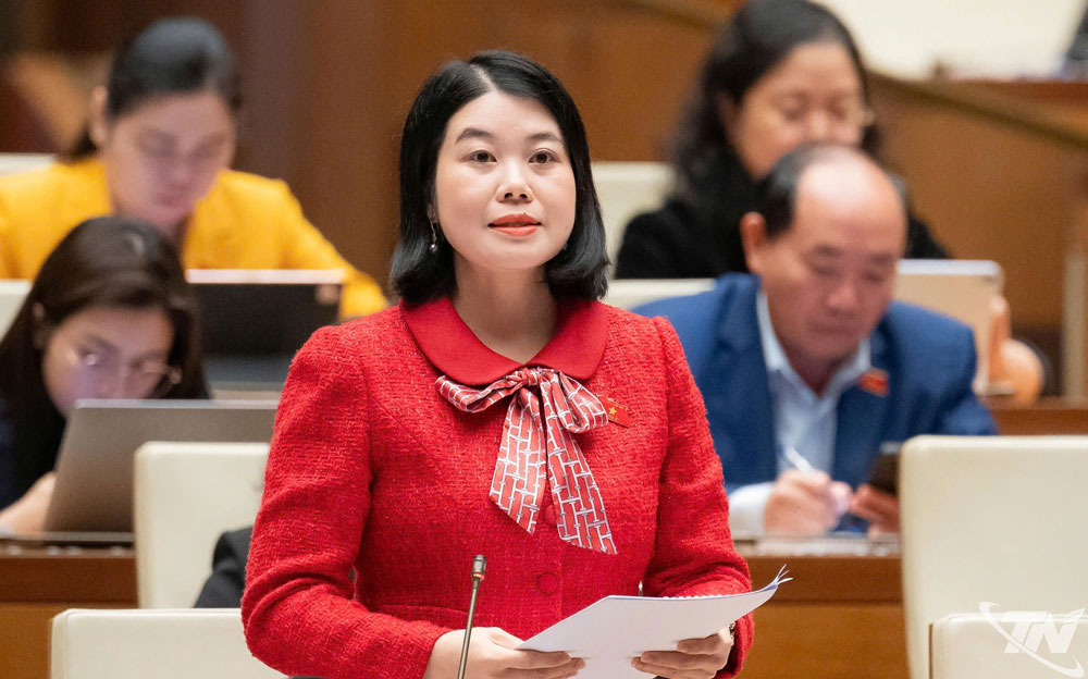 Đại biểu Nguyễn Thị Huế (Đoàn ĐBQH tỉnh Thái Nguyên) tham gia thảo luận.