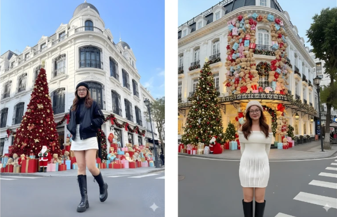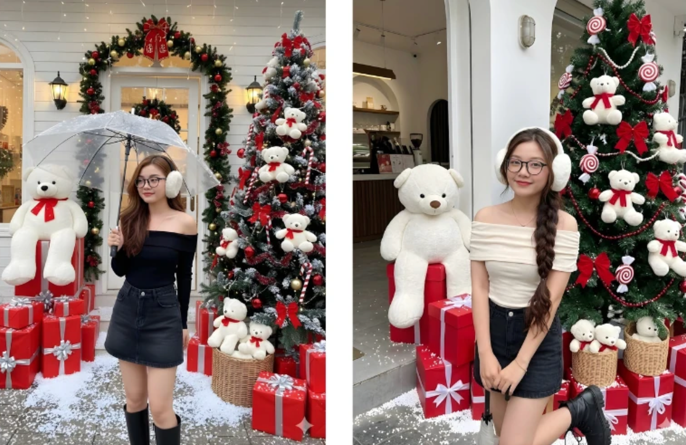 Chỉ cần một tấm ảnh chân dung và chọn phong cách Noel yêu thích, Gemini sẽ tạo ngay bộ ảnh “chuẩn phố đêm Giáng sinh” với trang phục nổi bật và phong cách mùa lễ hội đầy sức hút, hoàn toàn phù hợp để làm avatar Facebook hoặc đăng Story bắt trend Giáng sinh mà không cần bước chân ra ngoài.