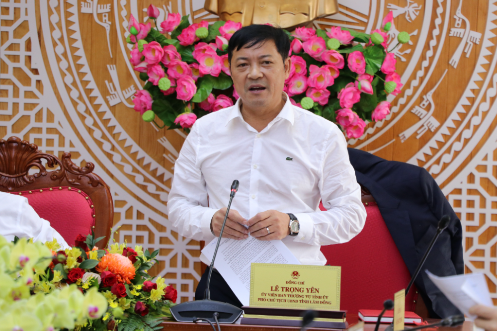 Phó Chủ tịch UBND tỉnh Lâm Đồng Lê Trọng Yên phát biểu tại buổi làm việc. Ảnh: lamdong.gov.vn