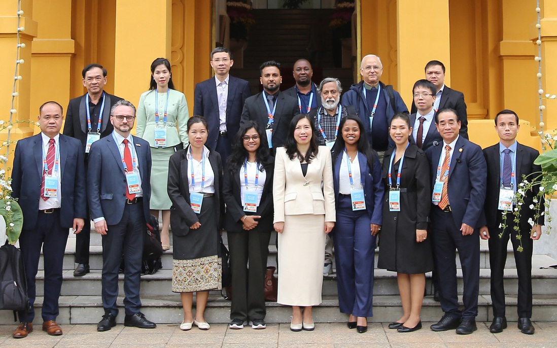 Thứ trưởng Bộ Ngoại giao Lê Thị Thu Hằng cùng đại biểu phóng viên quốc tế, báo của người Việt ở nước ngoài chụp ảnh lưu niệm