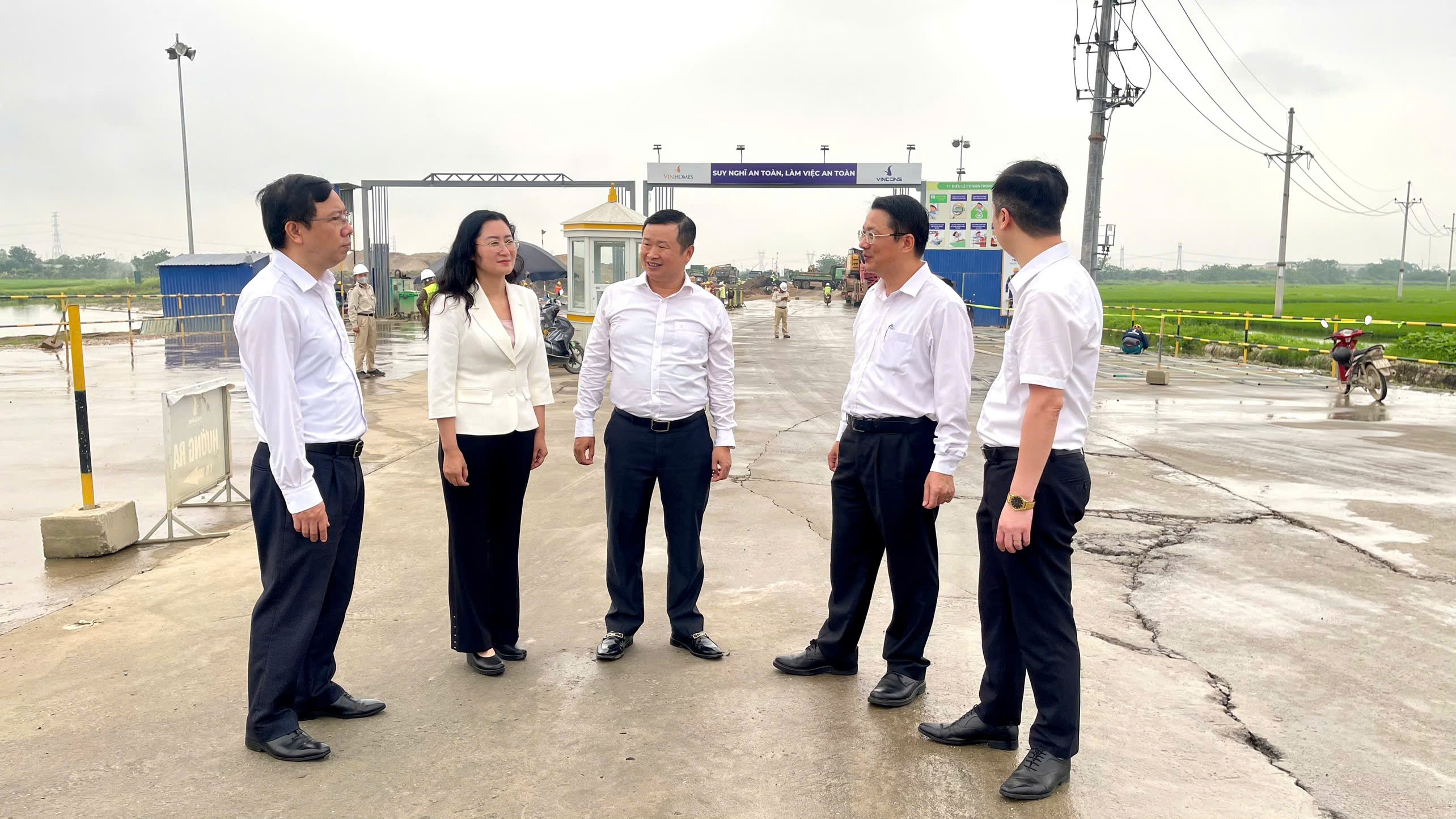 Trước khi vào làm việc, các đồng chí lãnh đạo Ban Tuyên giáo và Dân vận Thành ủy và đại diện các ban, ngành thành phố đã xuống hiện trường, kiểm tra công tác giải phóng mặt bằng tại Dự án Khu đô thị thể thao Olympic trên địa bàn xã Dân Hòa.