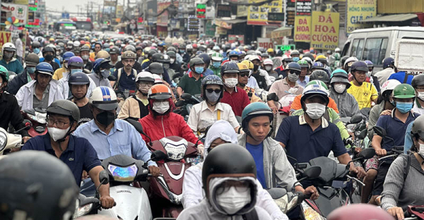 Người đi xe máy trên một tuyến đường vào giờ cao điểm.