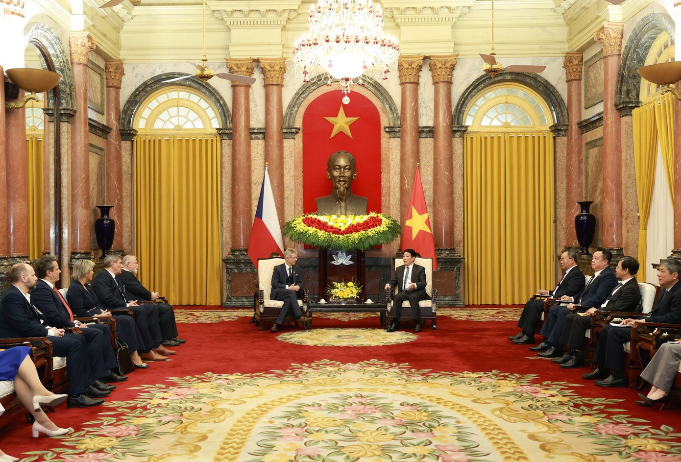 Chủ tịch nước Lương Cường đánh giá chuyến thăm có ý nghĩa rất quan trọng trong bối cảnh hai nước kỷ niệm 75 năm thiết lập quan hệ ngoại giao (1950-2025) và đang tích cực triển khai các nội hàm của khuôn khổ quan hệ Đối tác Chiến lược vừa được thiết lập giữa Việt Nam và Séc vào tháng 1 năm nay.