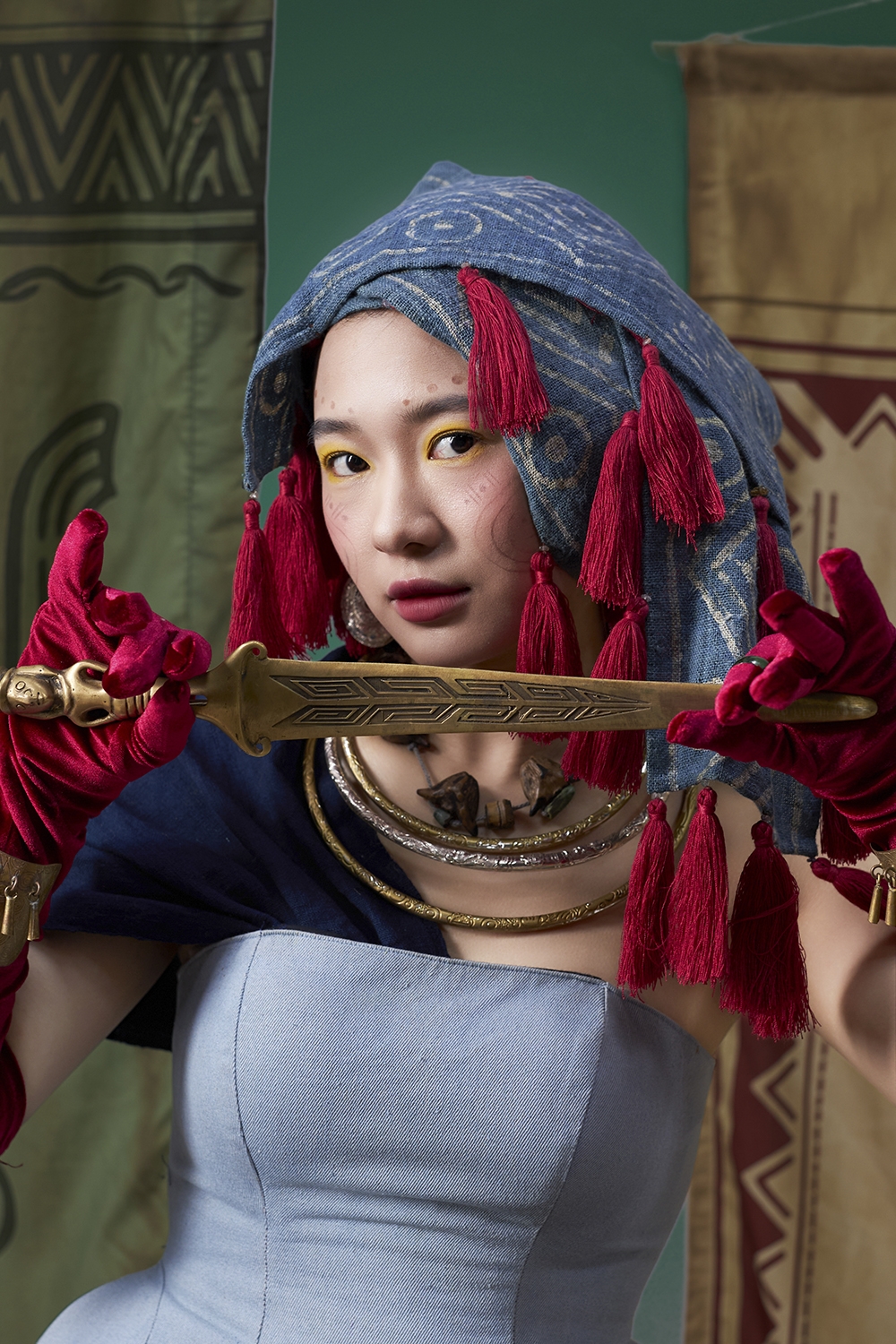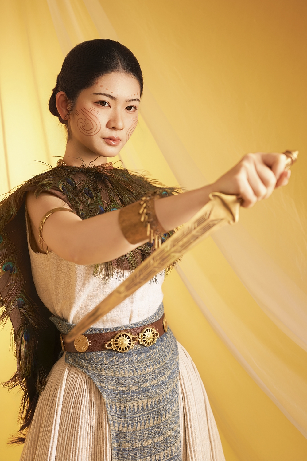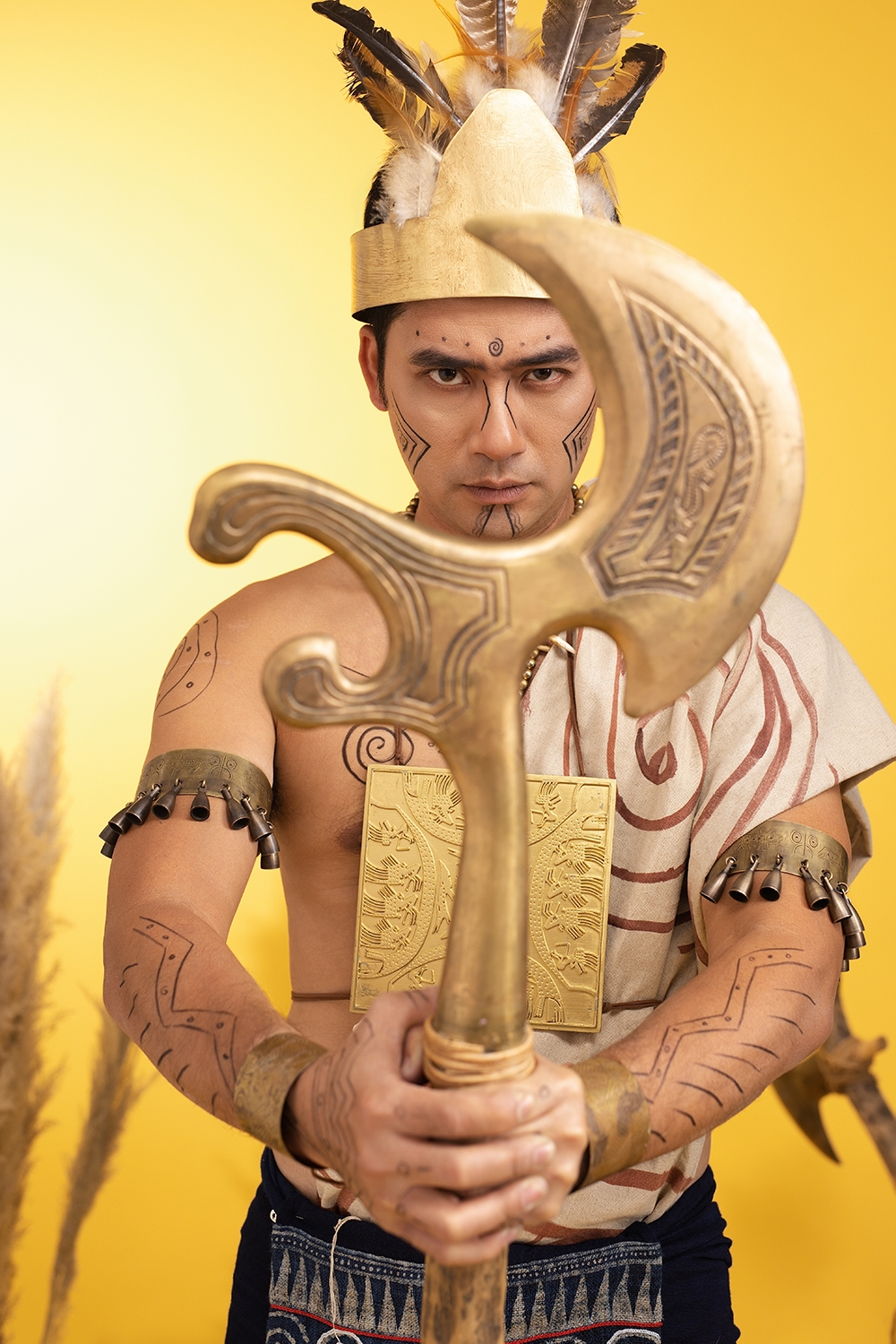 Trong khi đó, Phan Thắng mang đến sắc thái mạnh mẽ và bí ẩn qua những trang phục lấy cảm hứng từ thần thoại và truyền thuyết Việt. Hình ảnh nhân vật gợi liên tưởng đến các chiến binh Đông Sơn – những con người gắn liền với nhiệm vụ bảo vệ cộng đồng, bờ cõi và cội nguồn dân tộc. Các chi tiết phục trang góp phần khắc họa rõ nét tinh thần thượng võ và ý thức cộng đồng của cư dân thời kỳ dựng nước.