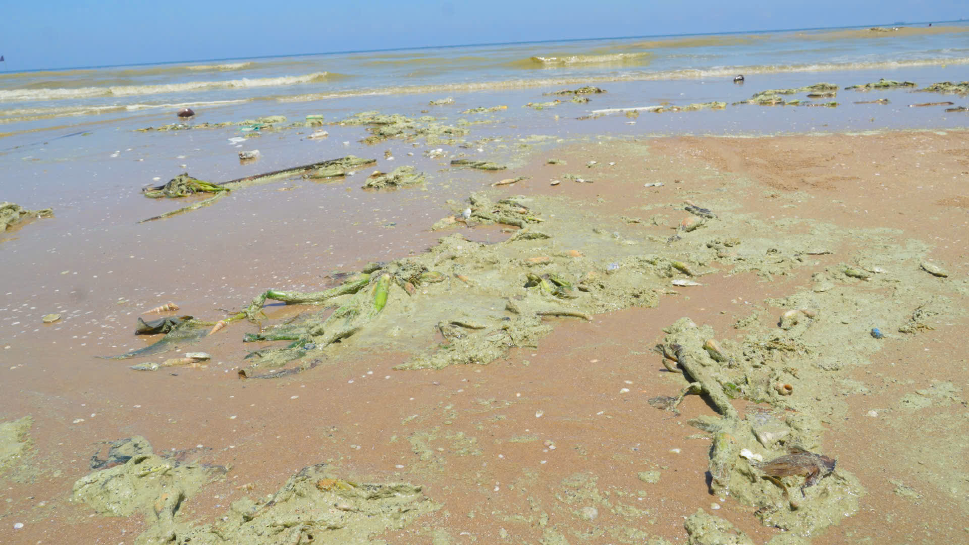 Tảo biển trôi dạt vào khu vực Bãi Sau, phường Vũng Tàu (TPHCM)