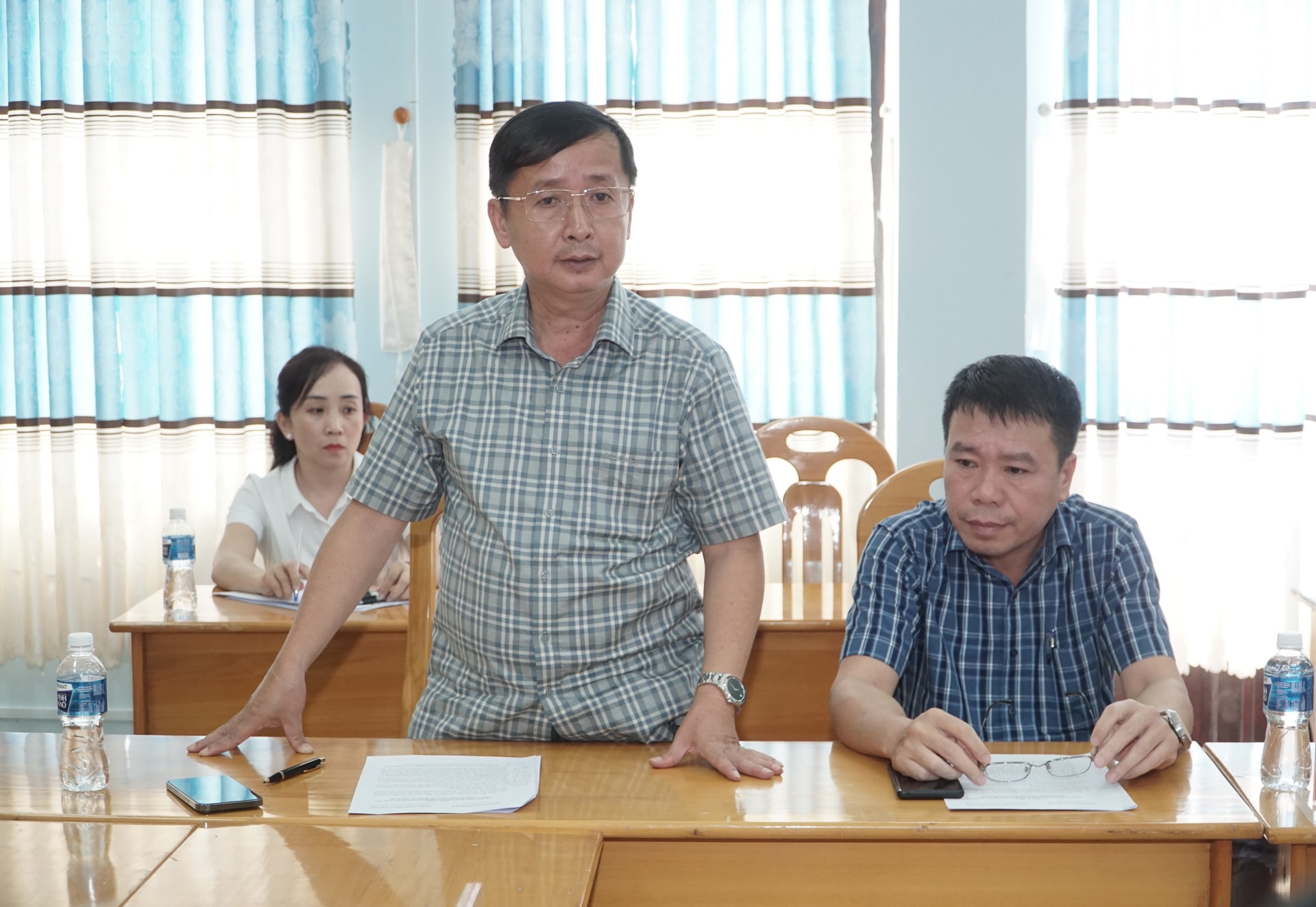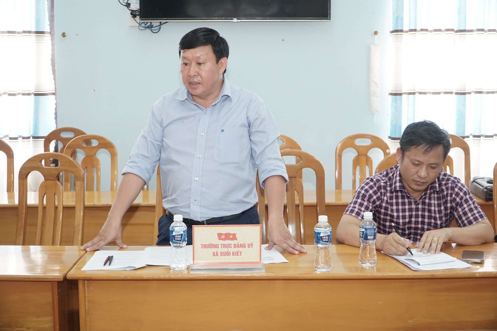 Đại diện Đảng ủy xã Suối Kiết báo cáo tại buổi làm việc