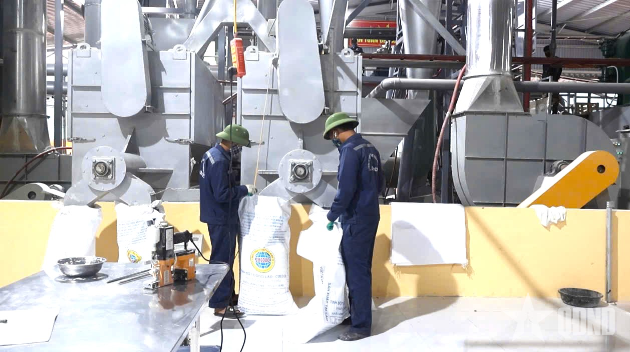 Cán bộ, nhân viên Nhà máy chế biến nông sản Pha Daeng vận hành dây chuyền sản xuất.