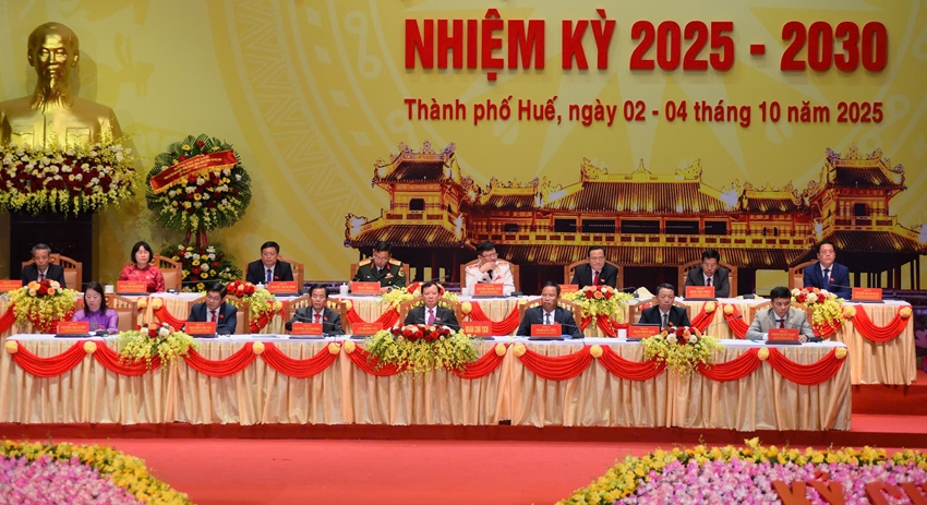 Đoàn Chủ tịch điều hành Đại hội Đảng bộ thành phố Huế lần thứ XVII sáng 3/10