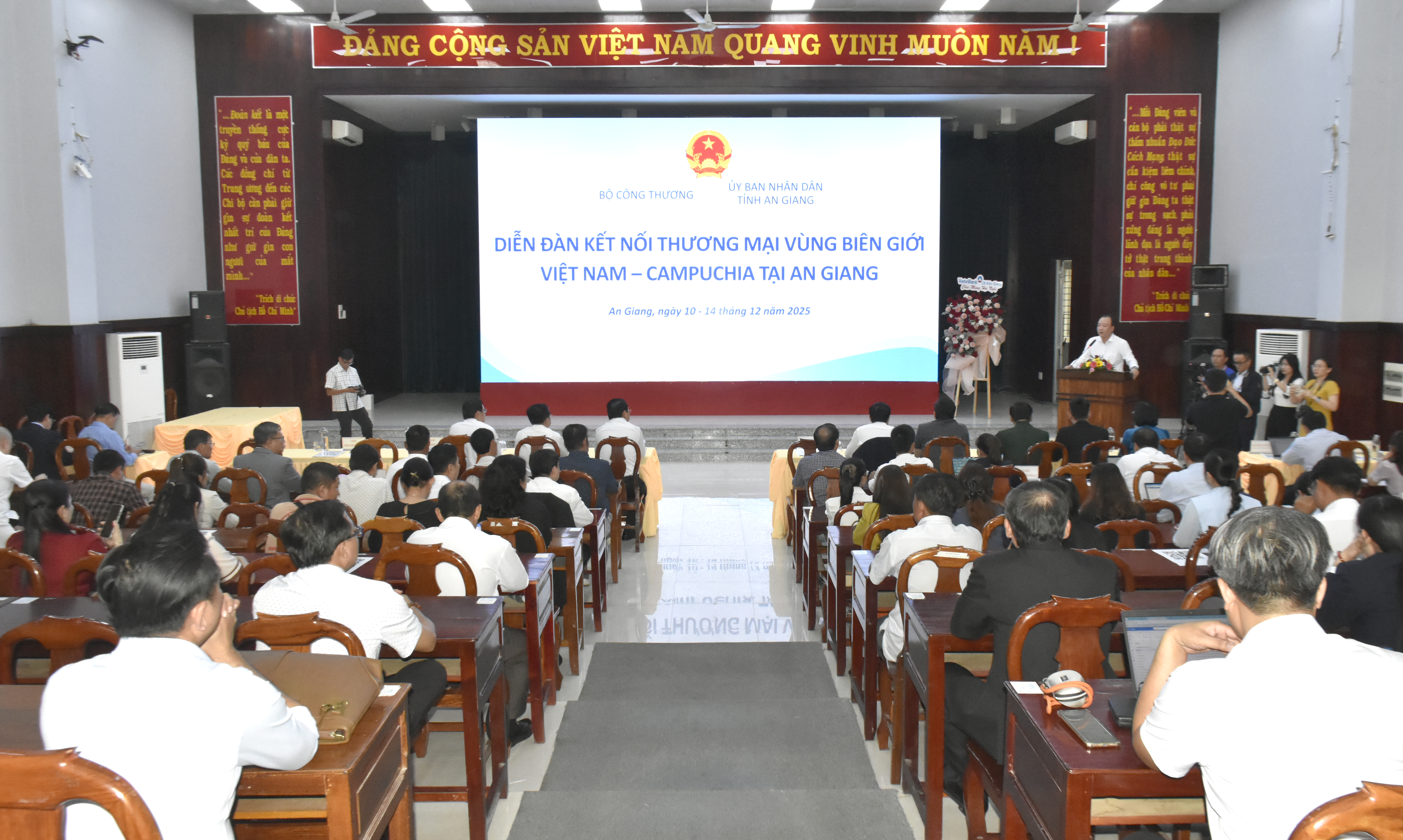 Phát biểu tại hội nghị, ông Lê Trung Hồ, Phó Chủ tịch UBND tỉnh An Giang, cho biết trong bối cảnh kinh tế khu vực còn nhiều biến động, các tỉnh biên giới đã nỗ lực duy trì đà tăng trưởng thương mại ổn định. Tại An Giang, thương mại biên giới tiếp tục là điểm sáng, tạo động lực hỗ trợ mạnh mẽ cho sản xuất – kinh doanh của doanh nghiệp. Giai đoạn 2021 – 2025, kim ngạch xuất nhập khẩu hàng hóa qua các cửa khẩu đất liền giữa An Giang và Campuchia tăng bình quân 12,7% mỗi năm. Hợp tác thương mại không chỉ mang ý nghĩa kinh tế mà còn góp phần củng cố an ninh biên giới, tăng cường mối quan hệ hữu nghị, gắn bó giữa nhân dân hai nước.