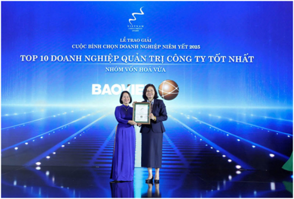Tập đoàn Bảo Việt đạt Top 10 Doanh nghiệp Quản trị Công ty tốt nhất tại Cuộc Bình chọn Doanh nghiệp Niêm yết 2025 (Vietnam Listed Company Awards - VLCA), khẳng định giá trị của quản trị minh bạch và phát triển bền vững.