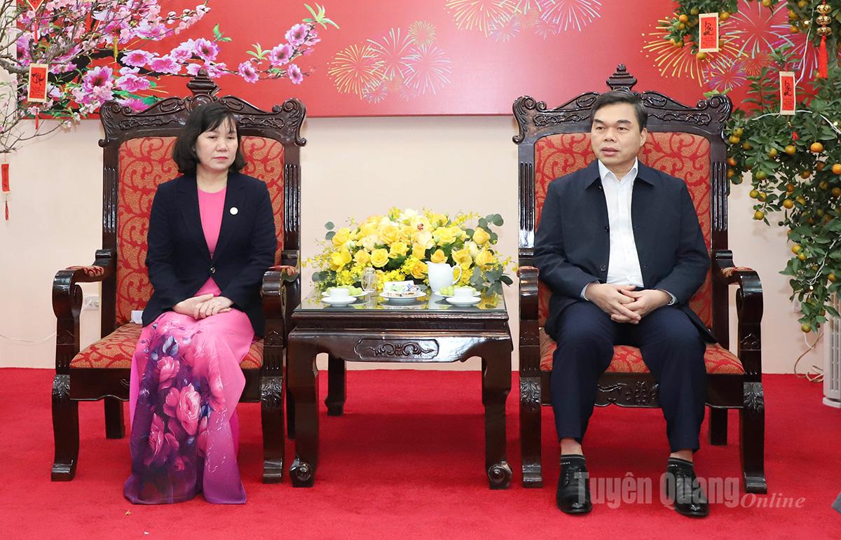 Tiếp đoàn về phía tỉnh Tuyên Quang có các đồng chí: Ma Thế Hồng, Phó Bí thư Tỉnh ủy, Chủ tịch Ủy ban MTTQ Việt Nam tỉnh; Vương Ngọc Hà, Ủy viên BTV Tỉnh ủy, Phó Chủ tịch UBND tỉnh; lãnh đạo Sở Công thương, Sở Tài chính.