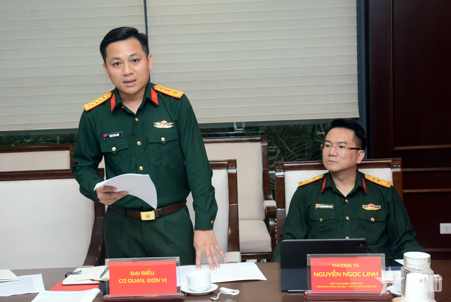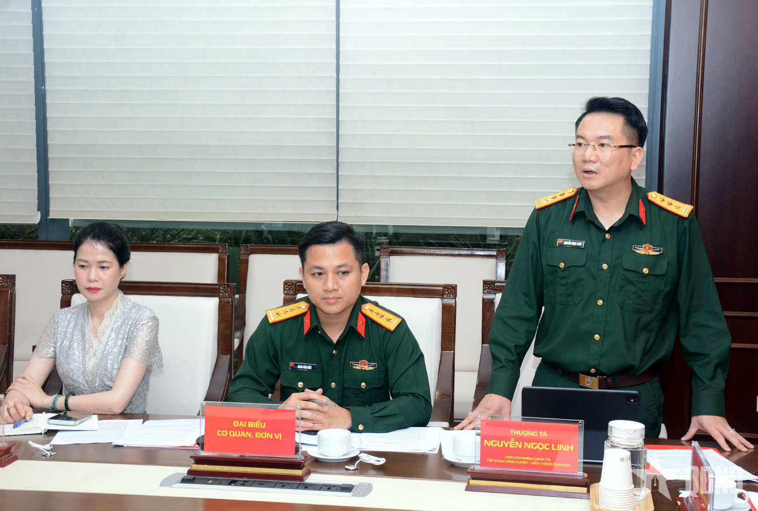 Thượng tá Nguyễn Ngọc Linh, Phó chủ nhiệm Chính trị Tập đoàn Công nghiệp - Viễn thông Quân đội phát biểu tại buổi khảo sát.
