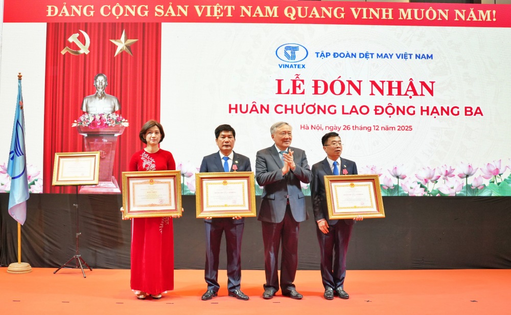 Nhằm ghi nhận những kết quả đã đạt được và sự đóng góp của Vinatex, đặc biệt là thành tích đột xuất giai đoạn 2022 - 2024, thay mặt Đảng và Nhà nước, đồng chí Nguyễn Hòa Bình - Ủy viên Bộ Chính trị, Phó Bí thư Thường trực Đảng ủy Chính phủ, Phó Thủ tướng Thường trực Chính phủ đã trao Huân chương Lao động hạng Ba cho Tập đoàn Dệt May Việt Nam. Đây là lần thứ 5 trong 30 năm xây dựng và phát triển Tập đoàn Dệt May Việt Nam đón nhận các phần thưởng cao quý (Huân chương Sao vàng - năm 2010, Huân chương Hồ Chí Minh - năm 2005, Huân chương Độc lập Hạng Ba - năm 2000, danh hiệu Anh hùng Lao động - năm 2015).