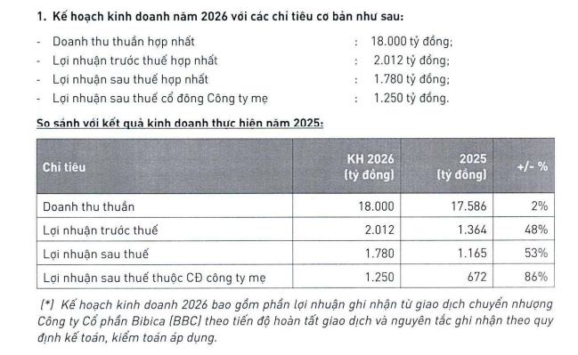 Ngược lại, chỉ tiêu lợi nhuận sau thuế được đặt ở mức 1.780 tỷ đồng, tăng tới 53% so với thực hiện năm 2025. Theo doanh nghiệp, động lực chính cho mức tăng trưởng đột biến này đến từ khoản lãi ước tính khoảng 500 tỷ đồng từ việc chuyển nhượng cổ phần tại Bibica, dự kiến ghi nhận ngay trong quý I/2026.