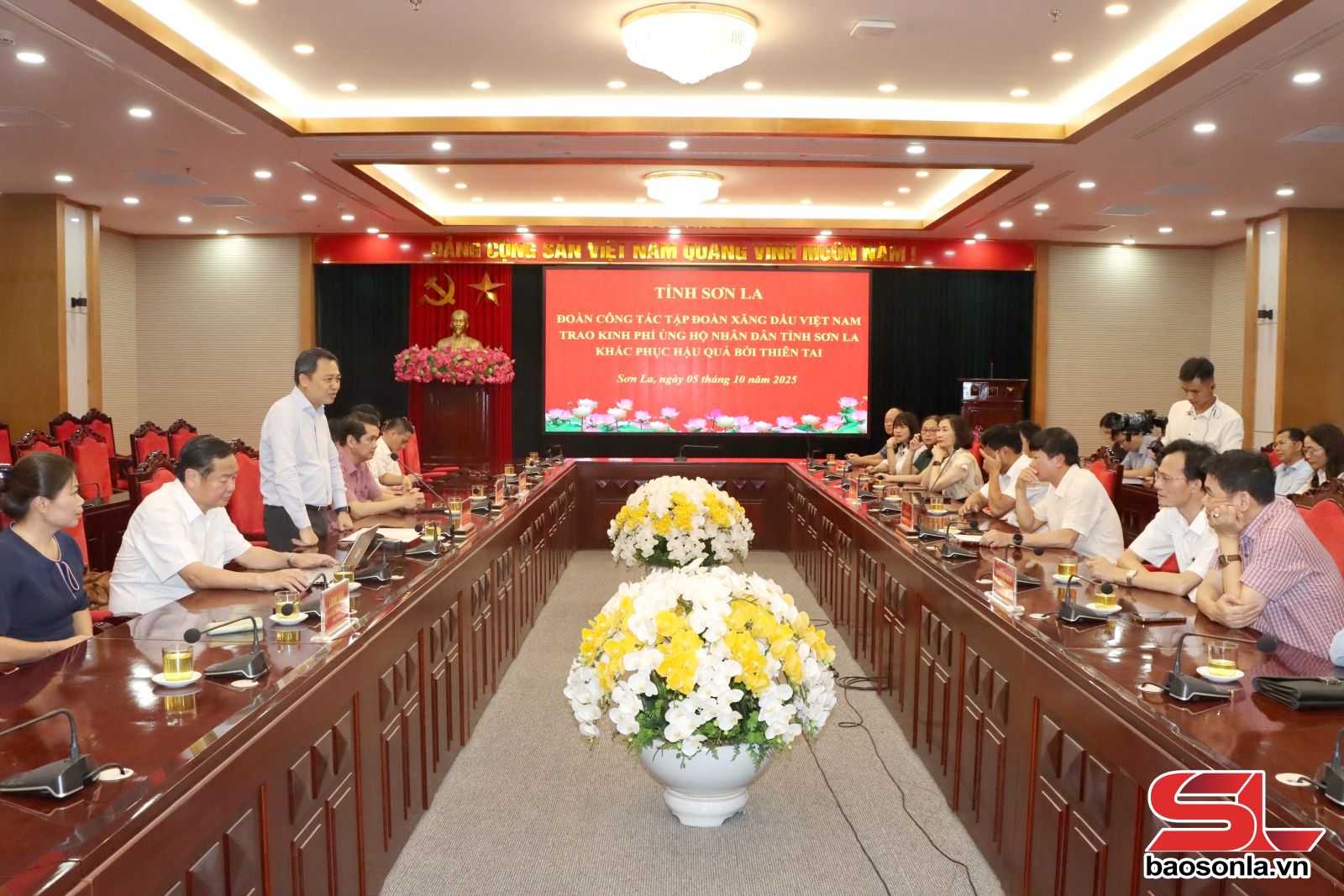 Phát biểu tại cuộc trao hỗ trợ, lãnh đạo Tập đoàn Xăng dầu Việt Nam đã chia sẻ sâu sắc trước những thiệt hại nặng nề mà nhân dân Sơn La phải gánh chịu do thiên tai gây ra. Với tinh thần tương thân tương ái, Tập đoàn trao 2 tỷ đồng với mong muốn được chung tay, góp sức cùng chính quyền và nhân dân tỉnh Sơn La sớm khắc phục hậu quả thiên tai, ổn định cuộc sống, khôi phục sản xuất, đảm bảo an toàn sinh kế cho nhân dân. Những năm qua, Tập đoàn đã triển khai nhiều chương trình ý nghĩa, như: Trao học bổng cho học sinh nghèo vượt khó, xây dựng nhà tình nghĩa, hỗ trợ nhân dân gặp khó khăn do thiên tai, lũ lụt trên địa bàn cả nước. Đối với tỉnh Sơn La, riêng năm 2024, Tập đoàn trao ủng hộ 6 tỷ đồng xây dựng nhà bếp và công trình phụ trợ, cầu dân sinh cho các trường học và các xã trên địa bàn tỉnh.