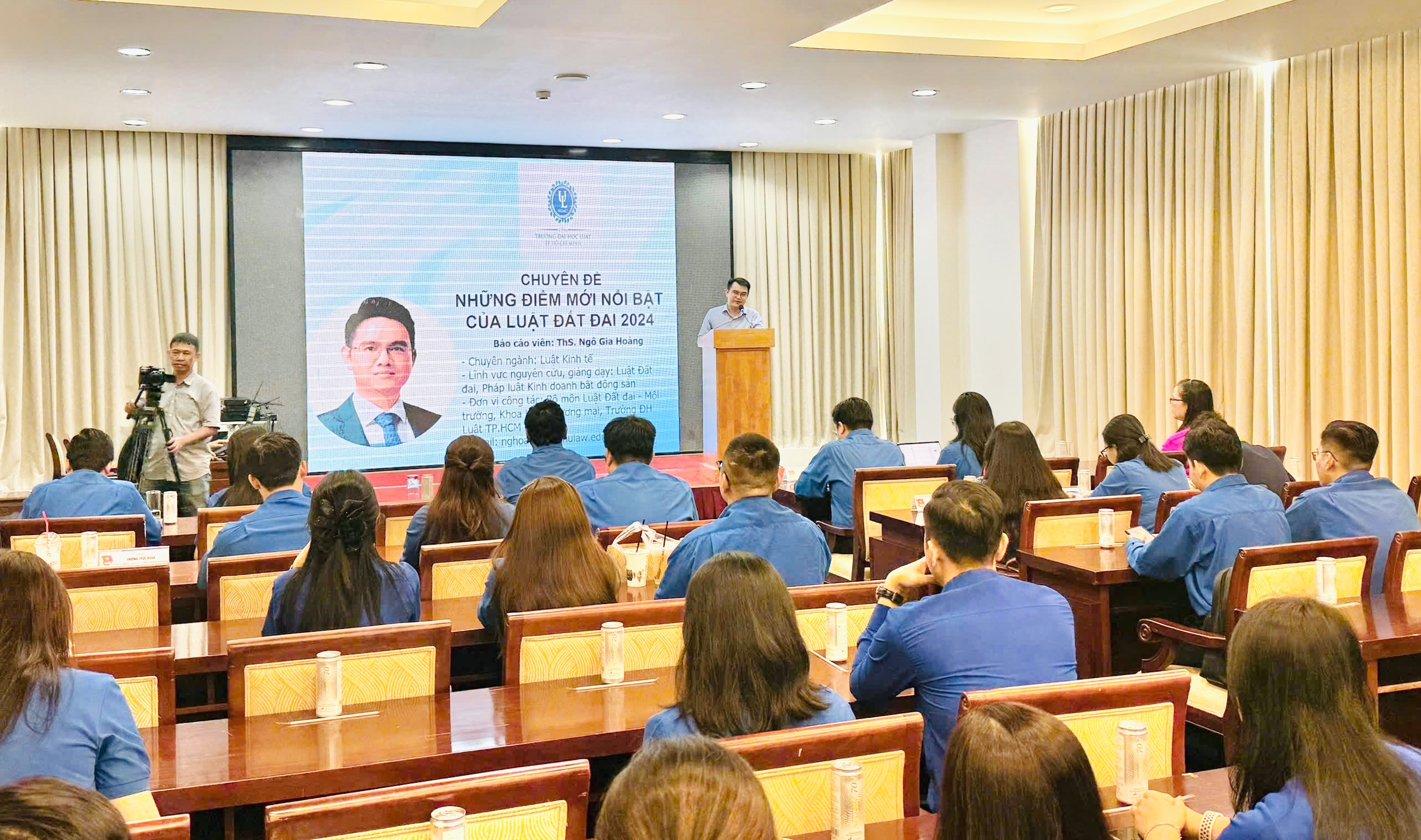 Tại chương trình, các bạn đoàn viên thanh niên được Thạc sĩ Ngô Gia Hoàng, Giảng viên Khoa Luật Thương mại, Trường Đại học Luật TPHCM, triển khai chuyên đề: Những điểm mới nổi bật của Luật Đất đai năm 2024, tập trung vào các quy định liên quan đến quyền và nghĩa vụ của người sử dụng đất, các trường hợp thu hồi đất, chính sách bồi thường, hỗ trợ, tái định cư.