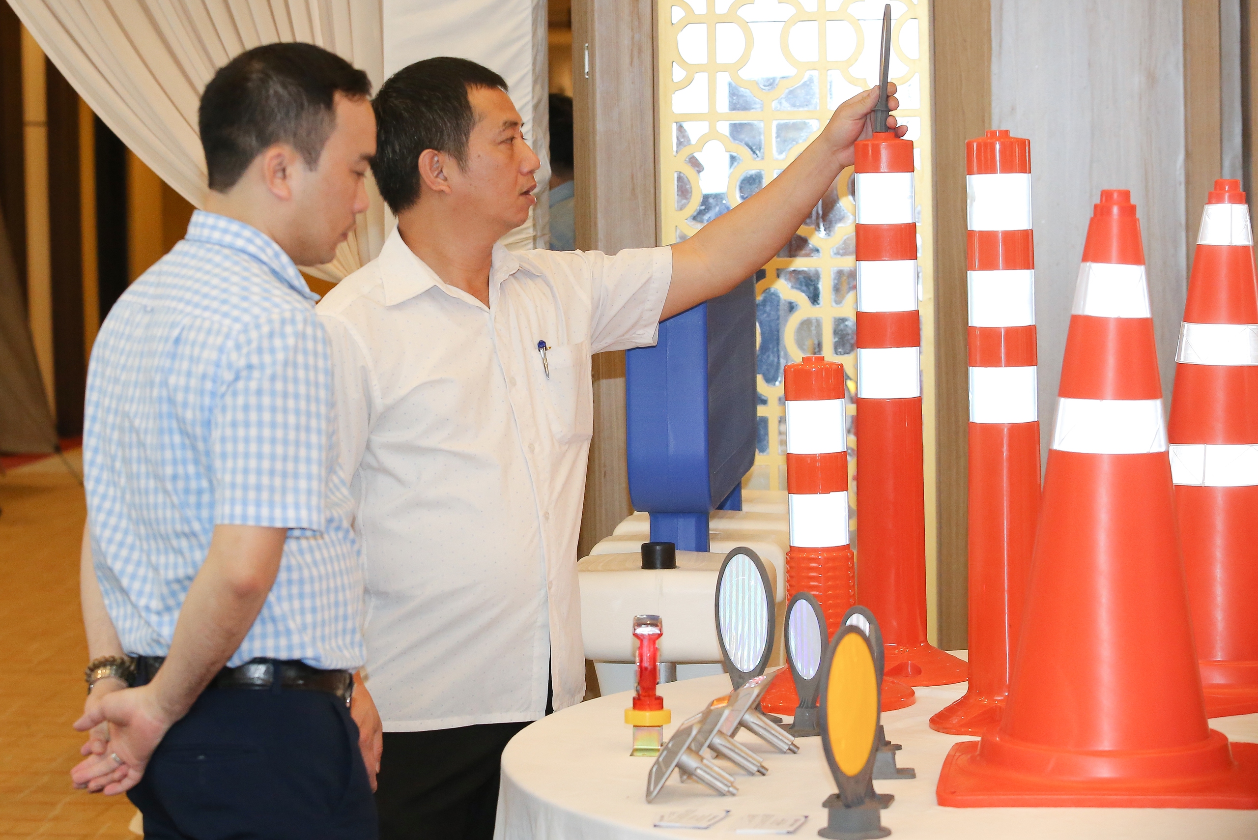 Các đại biểu trải nghiệm hệ thống thiết bị an toàn giao thông hiện đại nhất được trưng bày tại hội nghị.