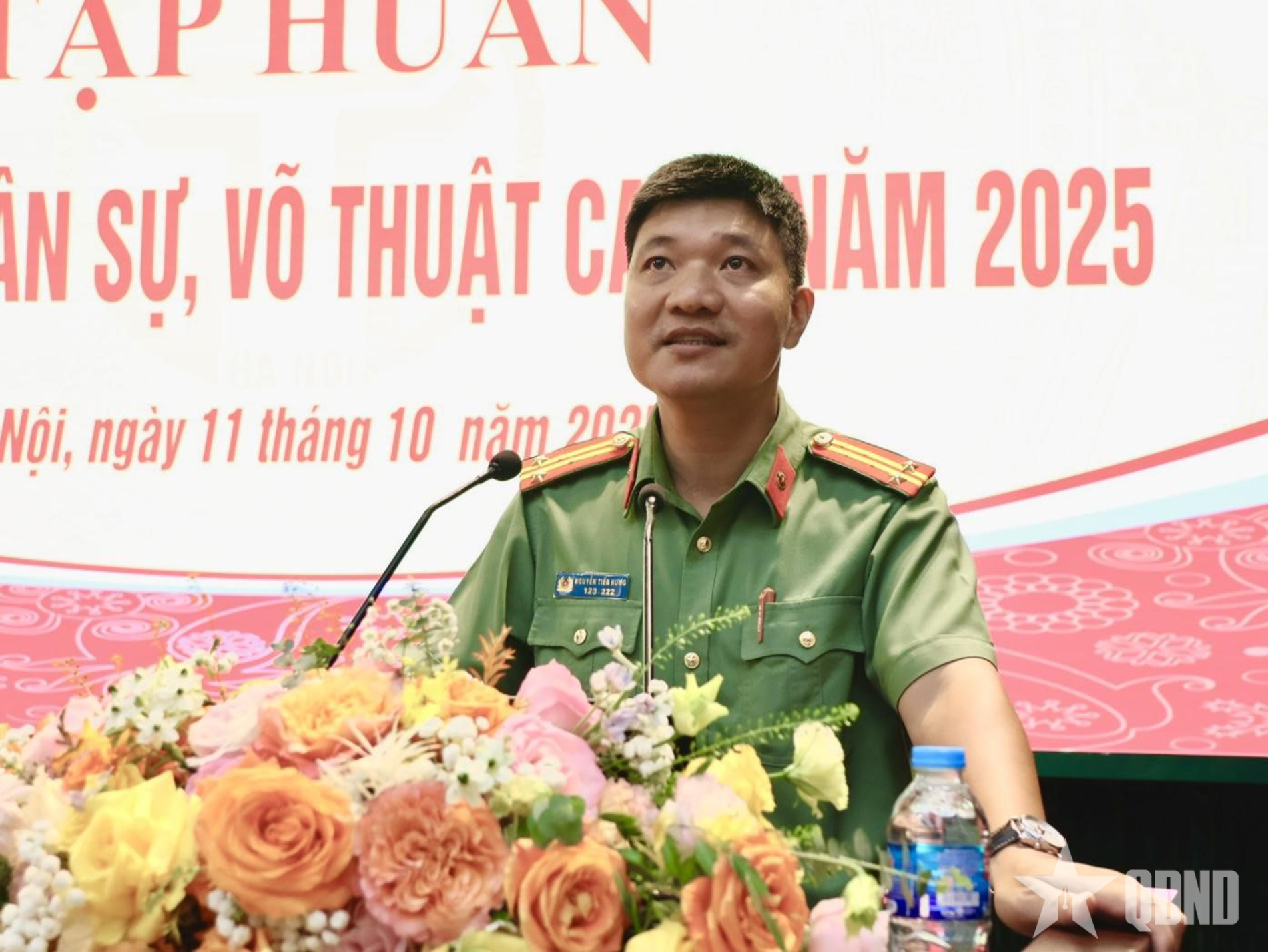 Dự và phát biểu khai mạc, Thượng tá Nguyễn Chí Công, Phó bí thư Đảng ủy, Phó trưởng phòng CSGT Công an TP Hà Nội nhấn mạnh, công tác điều lệnh, quân sự, võ thuật CAND có vai trò đặc biệt quan trọng, thể hiện tính kỷ luật, kỷ cương và bản lĩnh chính quy của lực lượng CAND.