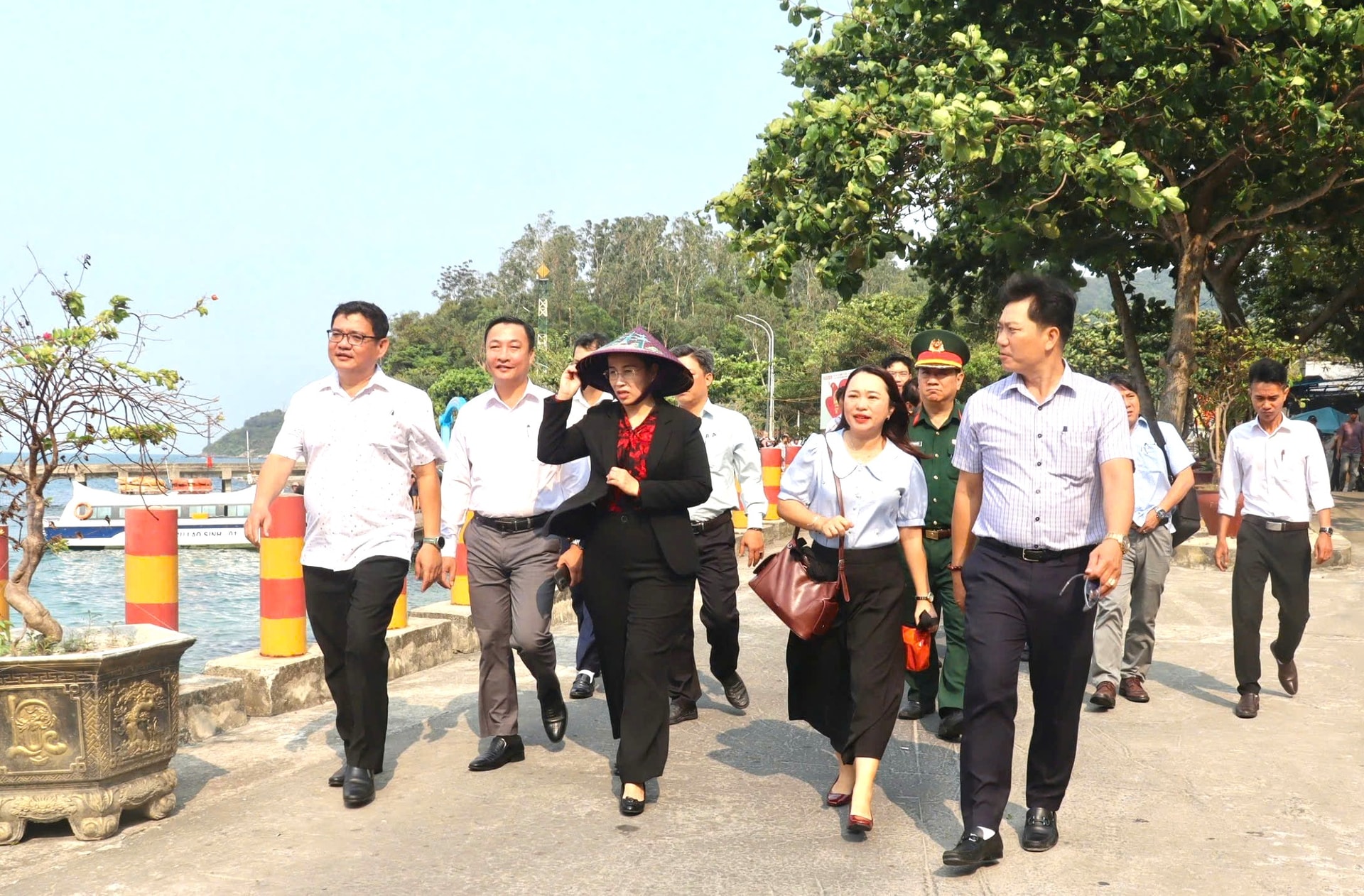 Phó Chủ tịch UBND thành phố Nguyễn Thị Anh Thi (giữa) kiểm tra thực tế tại xã Tân Hiệp. Ảnh: NGỌC HÀ