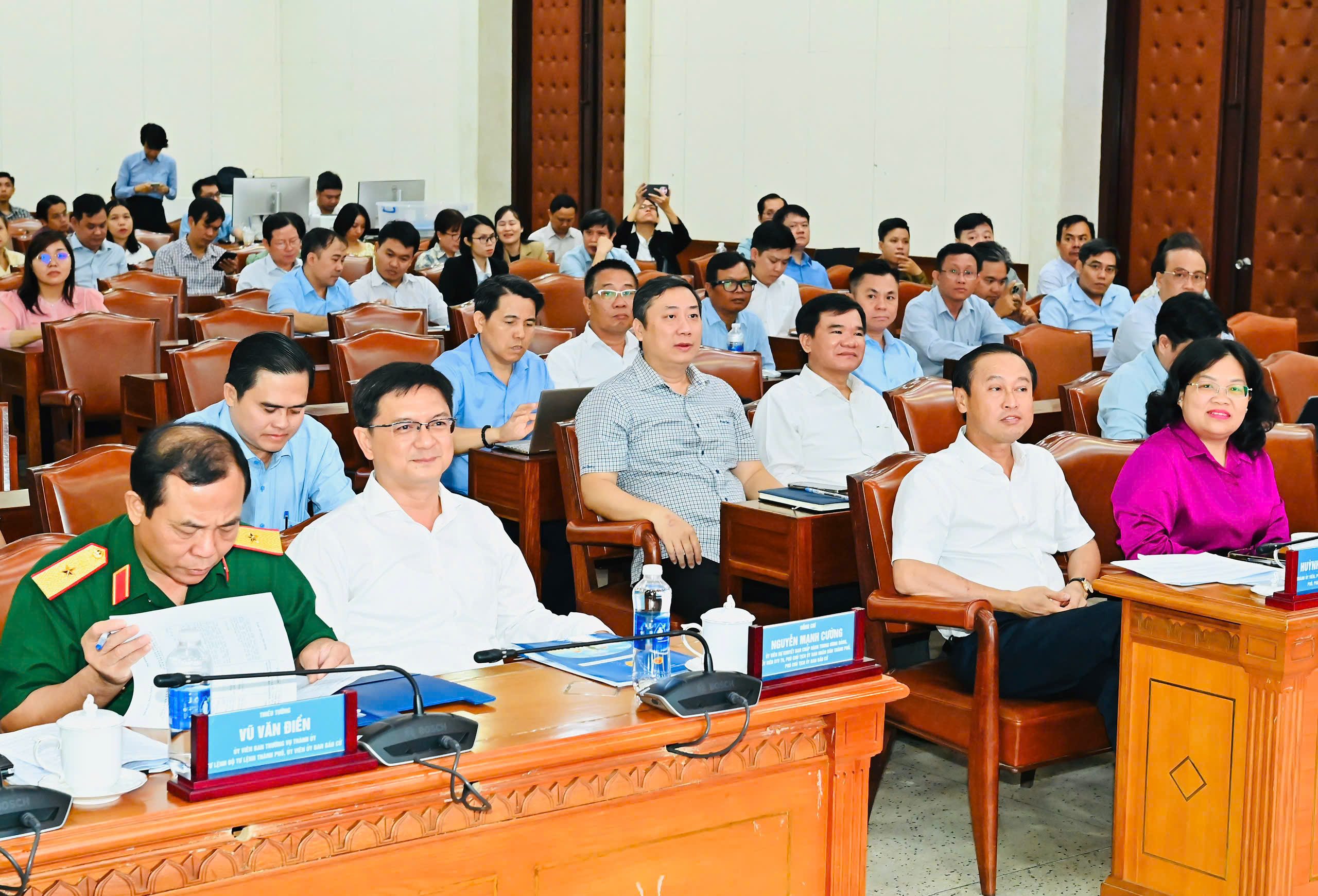 Lãnh đạo Ủy ban Bầu cử TPHCM dự hội nghị tập huấn. Ảnh: VIỆT DŨNG