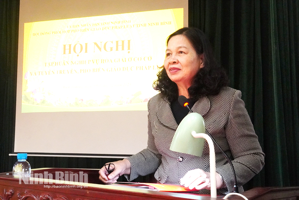 Tại hội nghị, đại diện lãnh đạo Hội Luật gia tỉnh đã truyền đạt chuyên đề pháp luật về hòa giải ở cơ sở với các nội dung: Khái niệm, vị trí, vai trò và ý nghĩa công tác hòa giải ở cơ sở; nội dung cơ bản của Luật Hòa giải ở cơ sở và các văn bản có liên quan; nghiệp vụ, kĩ năng hòa giải ở cơ sở.
