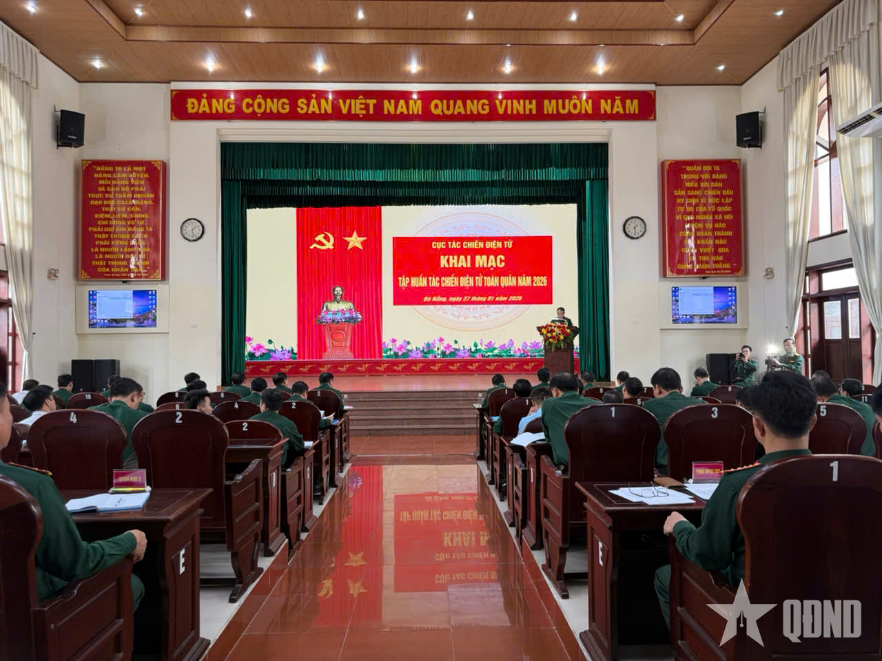 Chiều 27-1, tại Đà Nẵng, Cục Tác chiến điện tử (Bộ Tổng Tham mưu) tổ chức khai mạc tập huấn chuyên ngành Tác chiến điện tử toàn quân năm 2026. Đại tá Hoàng Tú Xinh, Phó cục trưởng Cục Tác chiến điện tử chủ trì buổi làm việc.