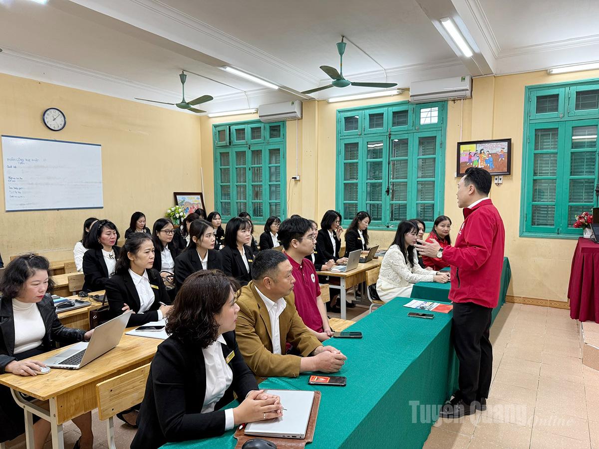 Các học viên trường THCS Hồng Thái trao đổi những kỹ năng trong buổi tập huấn.