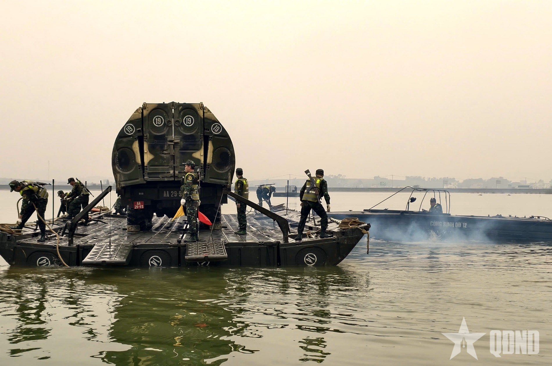 Luyện tập bảo đảm vượt sông bằng phà PMP.