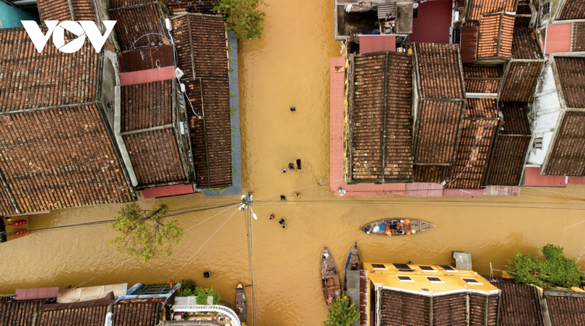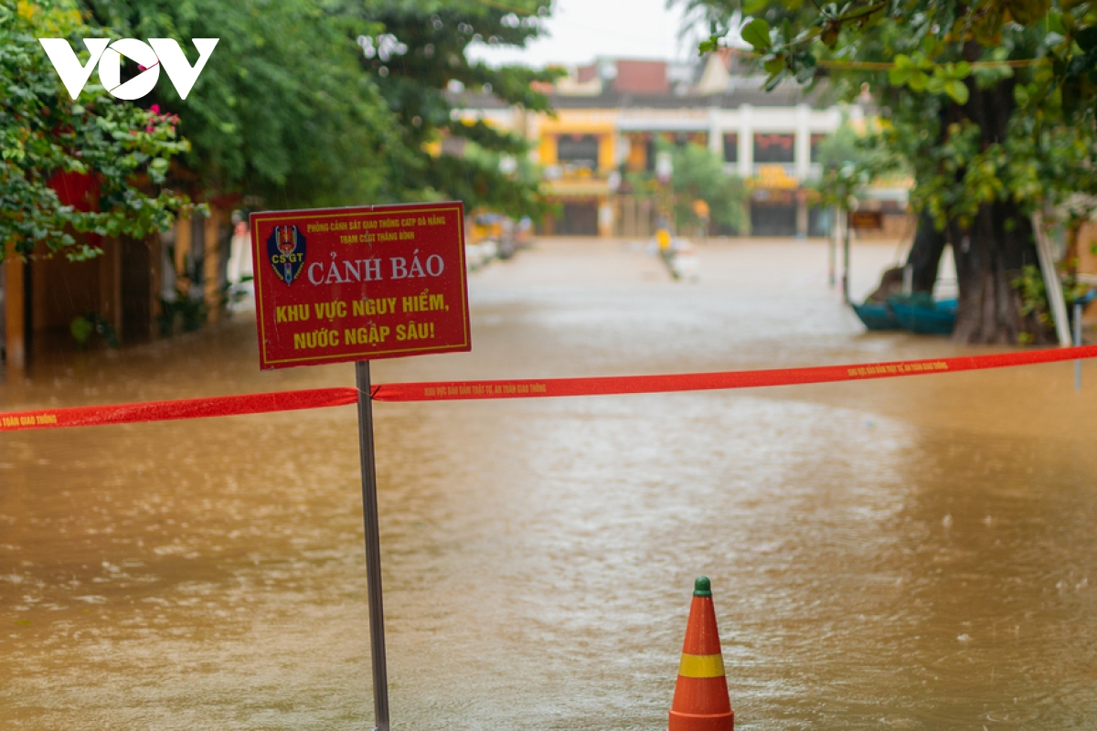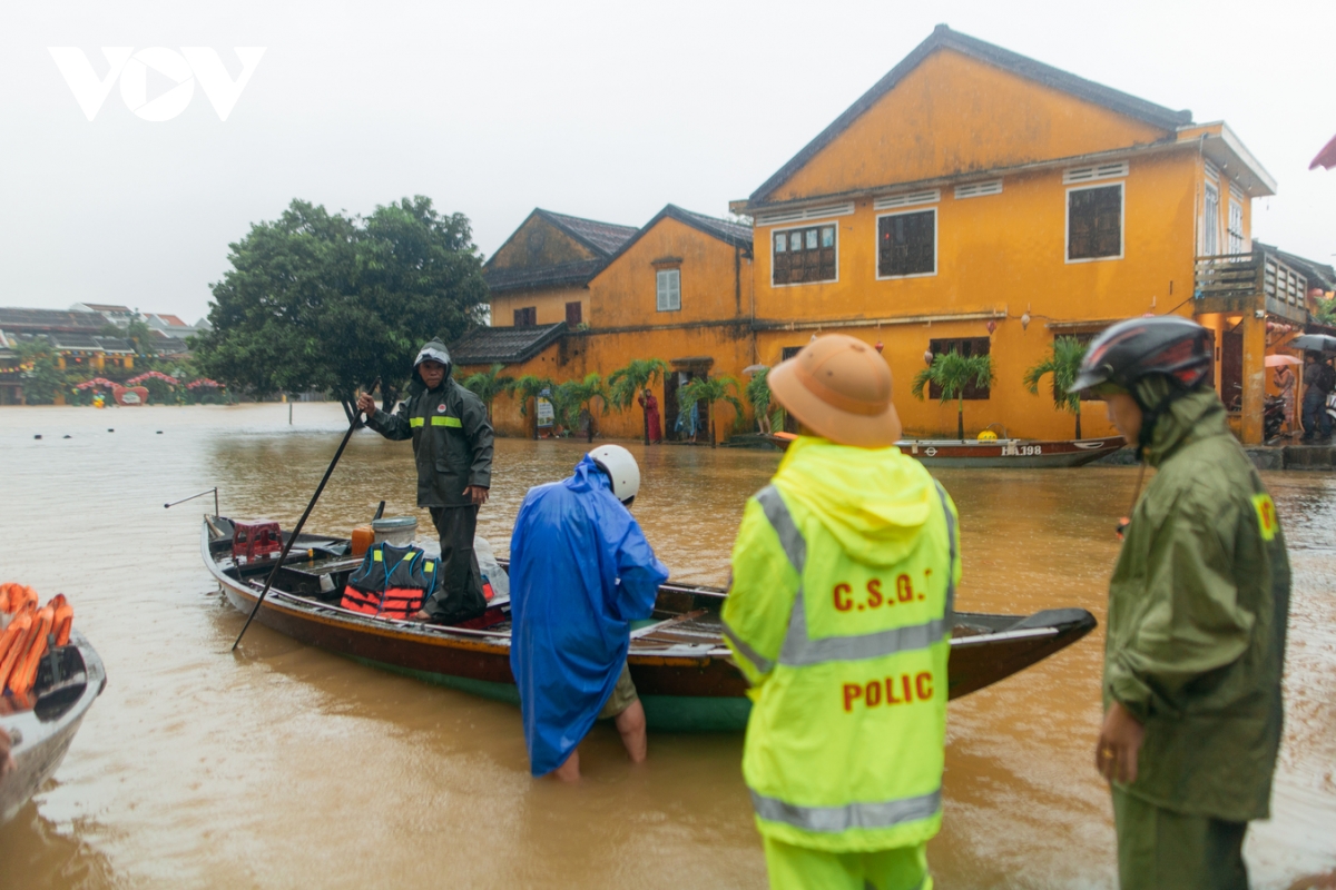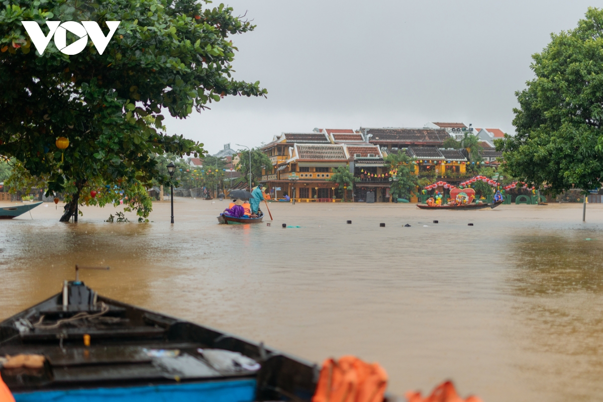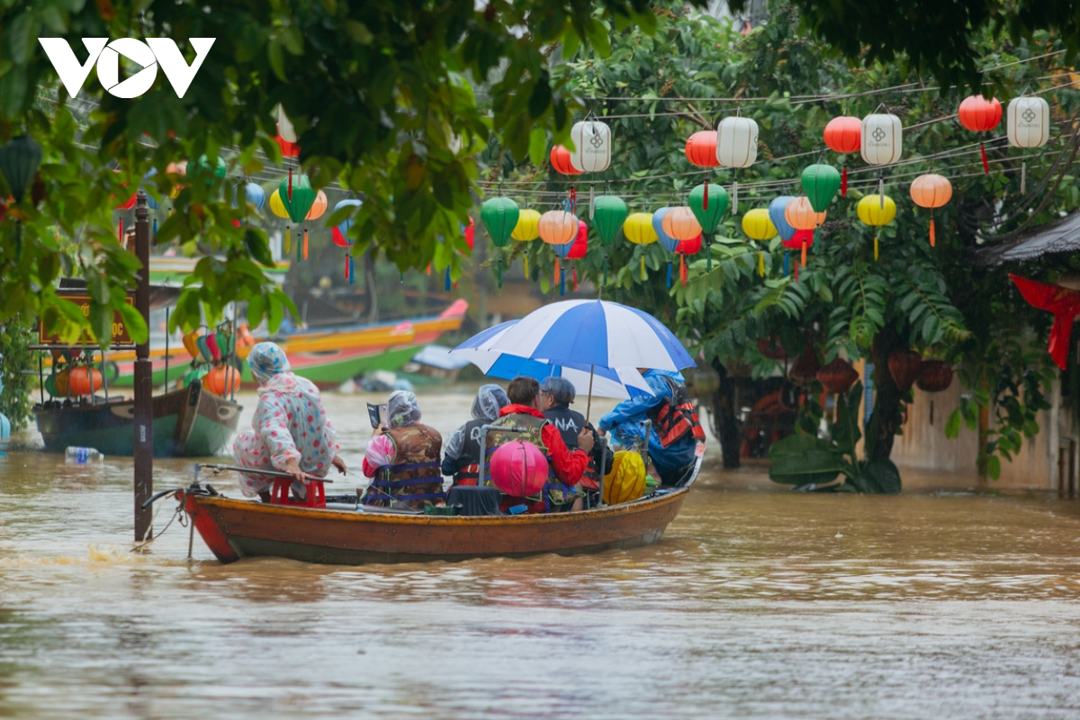 Khách nước ngoài thích thú đi lại trên phố cổ khi lũ về