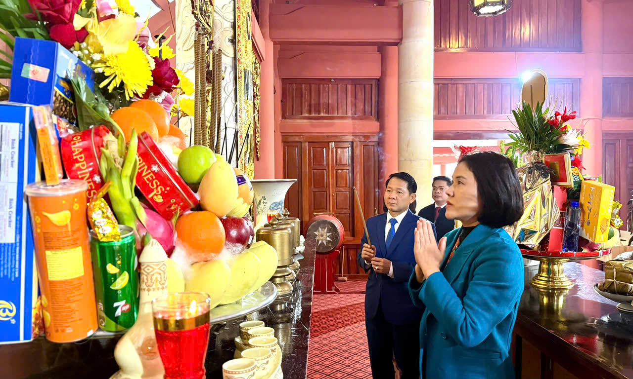 Đồng chí Đào Thị Lan Anh - Ủy viên Ban Chấp hành Đảng bộ tỉnh, Giám đốc Sở Nội vụ thắp hương tưởng niệm Chủ tịch Hồ Chí Minh tại Phòng thờ Bác Hồ.