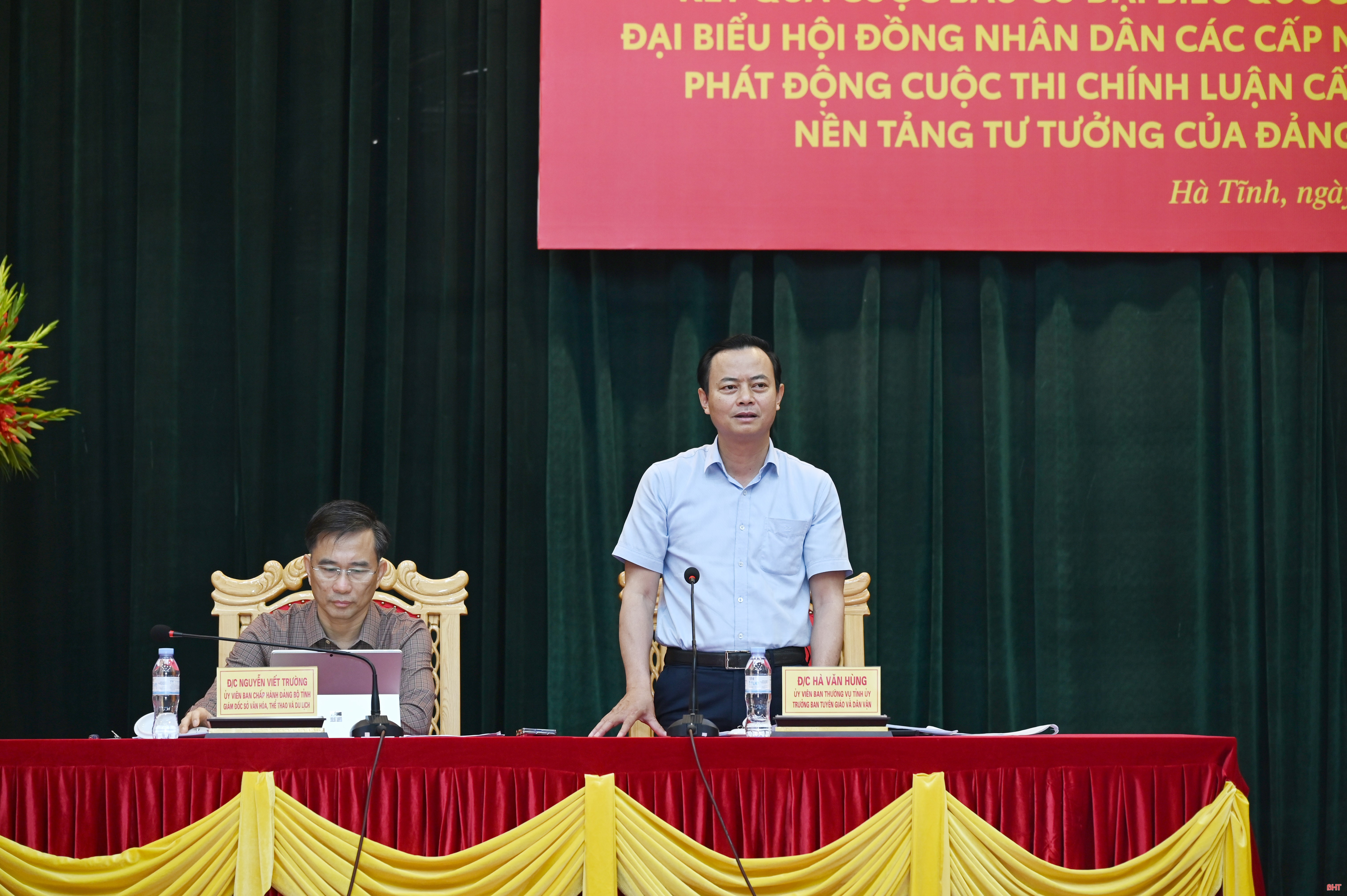 Đồng chí Hà Văn Hùng yêu cầu thời gian tới, các địa phương, cơ quan báo chí, đội ngũ báo cáo viên tiếp tục đẩy mạnh tuyên truyền kết quả bầu cử; tập trung cao điểm tuyên truyền kỷ niệm 120 năm Ngày sinh Tổng Bí thư Hà Huy Tập; gắn với tuyên truyền triển khai các nghị quyết, nhiệm vụ phát triển kinh tế - xã hội, xây dựng Đảng và hệ thống chính trị.