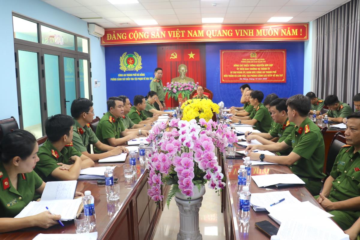 Tại buổi làm việc, Thượng tá Mai Thanh Tâm- Trưởng phòng Phòng Cảnh sát điều tra tội phạm về ma túy đã báo cáo tình hình, kết quả công tác phòng, chống ma túy 9 tháng năm 2025. Theo đó, lực lượng phòng chống ma túy TP đã phát hiện, bắt giữ 421 vụ, 809 đối tượng. Trong đó, Công an TP bắt giữ 403 vụ, 789 đối tượng; lực lượng BĐBP thành phố bắt quả tang 18 vụ, 20 đối tượng. Tang vật thu giữ gồm: 31,9 kg heroin, 4,5 kg cần sa, 7.241 viên và 288,7 kg ma túy tổng hợp, 103,2 kg cỏ Mỹ, 1.800 ml Methadone…