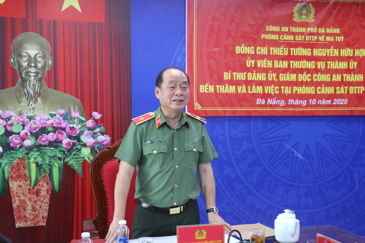 Phát biểu chỉ đạo tại buổi làm việc, Thiếu tướng Nguyễn Hữu Hợp thay mặt Ban Thường vụ Đảng ủy, Ban Giám đốc Công an TP đã biểu dương những thành tích, kết quả mà lãnh đạo Chỉ huy, CBCS Phòng Cảnh sát điều tra tội phạm về ma túy đã đạt được trong thời giam qua.